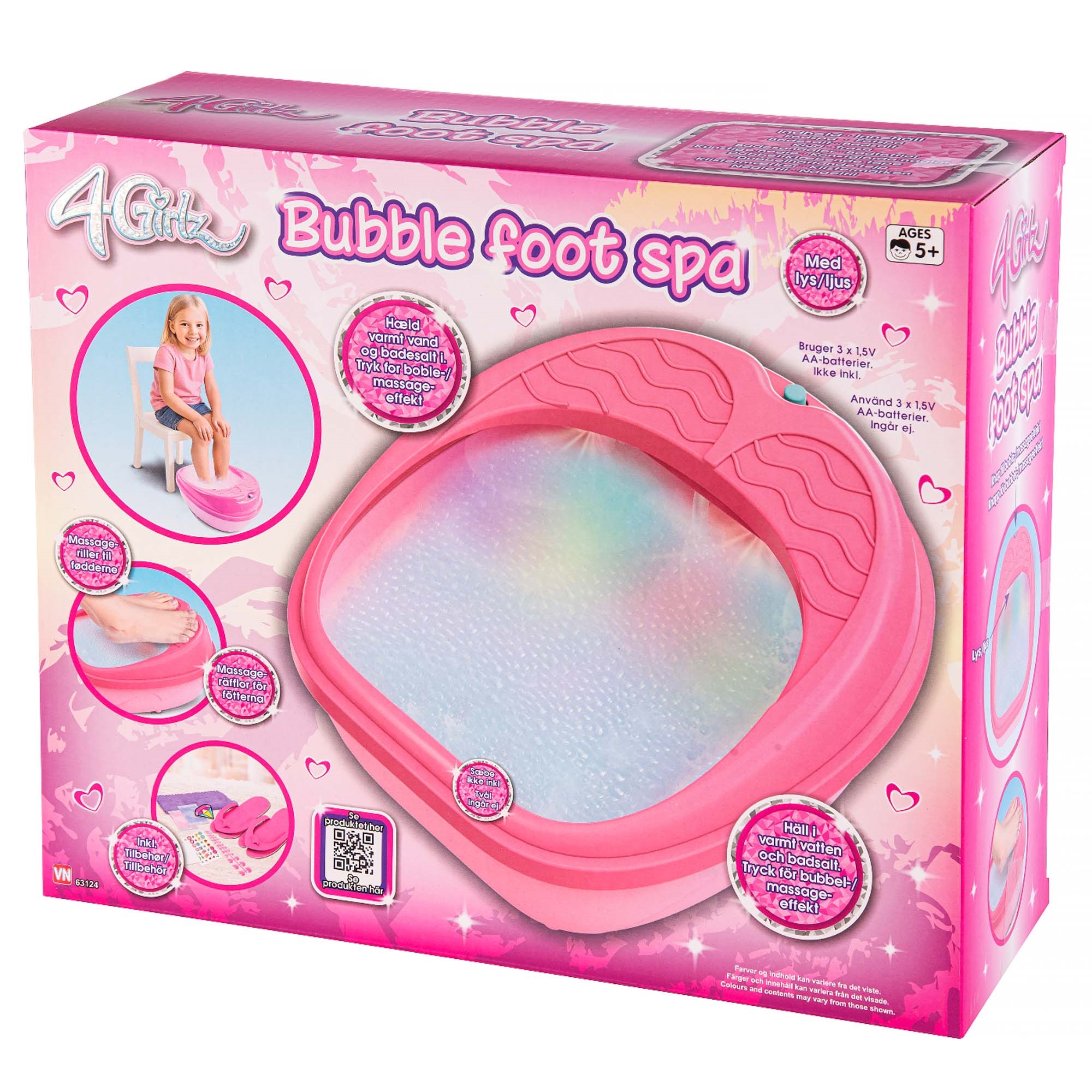Forside » Legetøj » Legetøj 4-GIRLZ BOBBLE FODSPA+LYS HOME-TEX Skarp pris: 199,95DKK På lager Trustpilot Antal Læg i kurv Se mere fra: HOME-TEX Artikelnummer: LEG-VN63124 Har du spørgsmål til produktet? Type: Krea leg Dele: Fodbad + flere dele Brand: 4 Girlz Farve: Pink Materiale: Plastik Anbefalet alder: +3 år Batteri: Ja, kræver 3xAA batterier - medfølger ikke Lyd: Nej Lys: Ja Certificering: Produktet er CE-mærket efter danske standarder. Din garanti for, at legetøjet lever op til gældende krav for sikkerhed og er egnet til børn. Fodspa. Hæld varmt vand og badesalt i og tryk for boble-/massageeffekt. Inkl. badesalt, klud, badesandaler, kunstige negle, dobbeltklæbende tape, klistermærker og neglefil. Ekskl. 3 stk. AA-batterier. Tilbage til Legetøj