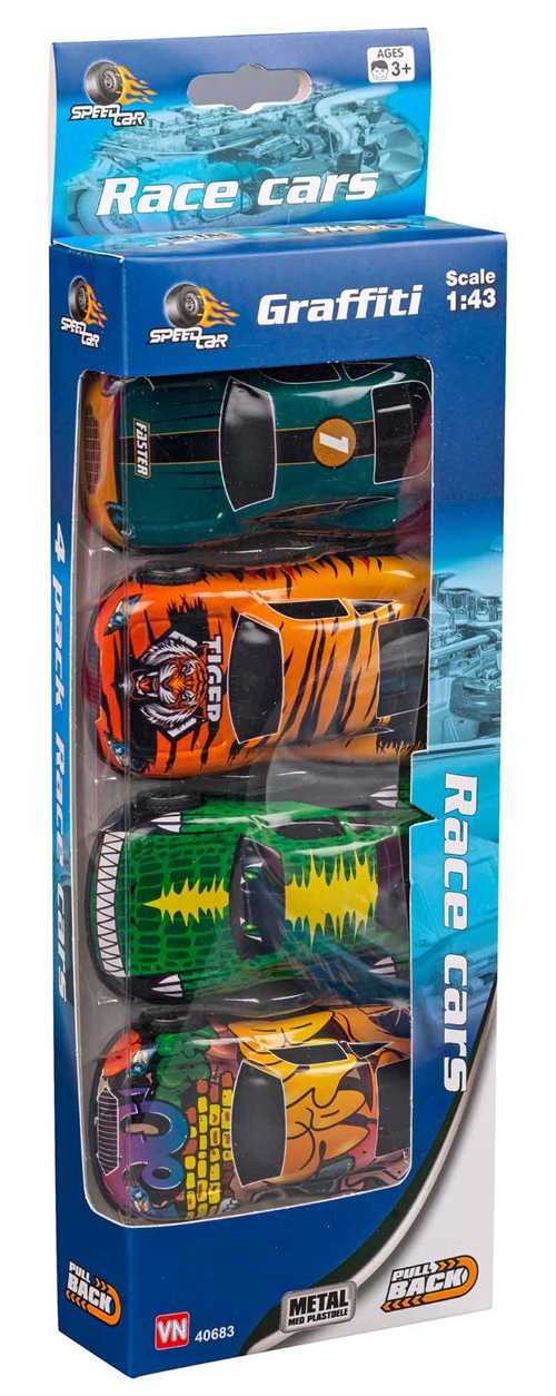 Forside » Legetøj » Forårsleg 4-Pak graffiti racerbiler 1:43 - Seje Legetøjsbiler til Børn HOME-TEX Skarp pris: 49,95DKK Få på lager Trustpilot Antal Læg i kurv Se mere fra: HOME-TEX Artikelnummer: LEG-VN40683 Har du spørgsmål til produktet? 4 legetøjsbiler med graffiti designIdeel til kreativ leg og bilbanerAktivt leg for børn Farverige biler til fartfyldt leg 4-Pak graffitibiler er et underholdende legetøjssæt til børn, der elsker racerbiler og actionfyldt leg. De unikke graffiti-inspirerede designs giver bilerne et moderne og iøjnefaldende udtryk. Ideelt til leg og samling Sættet indeholder fire racerbiler, som giver variation i legen og mulighed for at skabe egne scenarier. Bilerne er dekoreret med farverige mønstre, der gør dem visuelt spændende og attraktive for børn. Racerbilerne har en perfekt størrelse der gør bilerne nemme at håndtere og lege med for børn og er designet med pullback. Stimulerer kreativ leg Bilerne kan bruges sammen med mange typer legetøjsbaner og tilbehør. Børn kan opfinde historier og lege med fart, racerløb og eventyr. Social leg Velegnet til leg med venner eller søskende, hvor flere kan deltage. Tilbage til Forårsleg