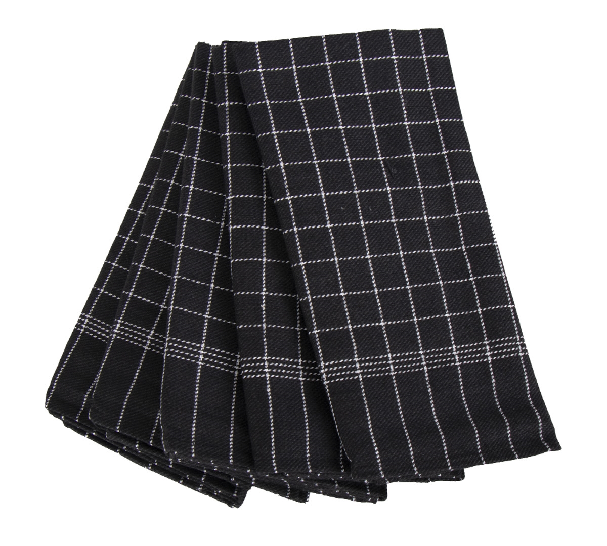 5 stk. Kokkeviskestykker - 50x100 cm sorte viskestykker med hvide tern