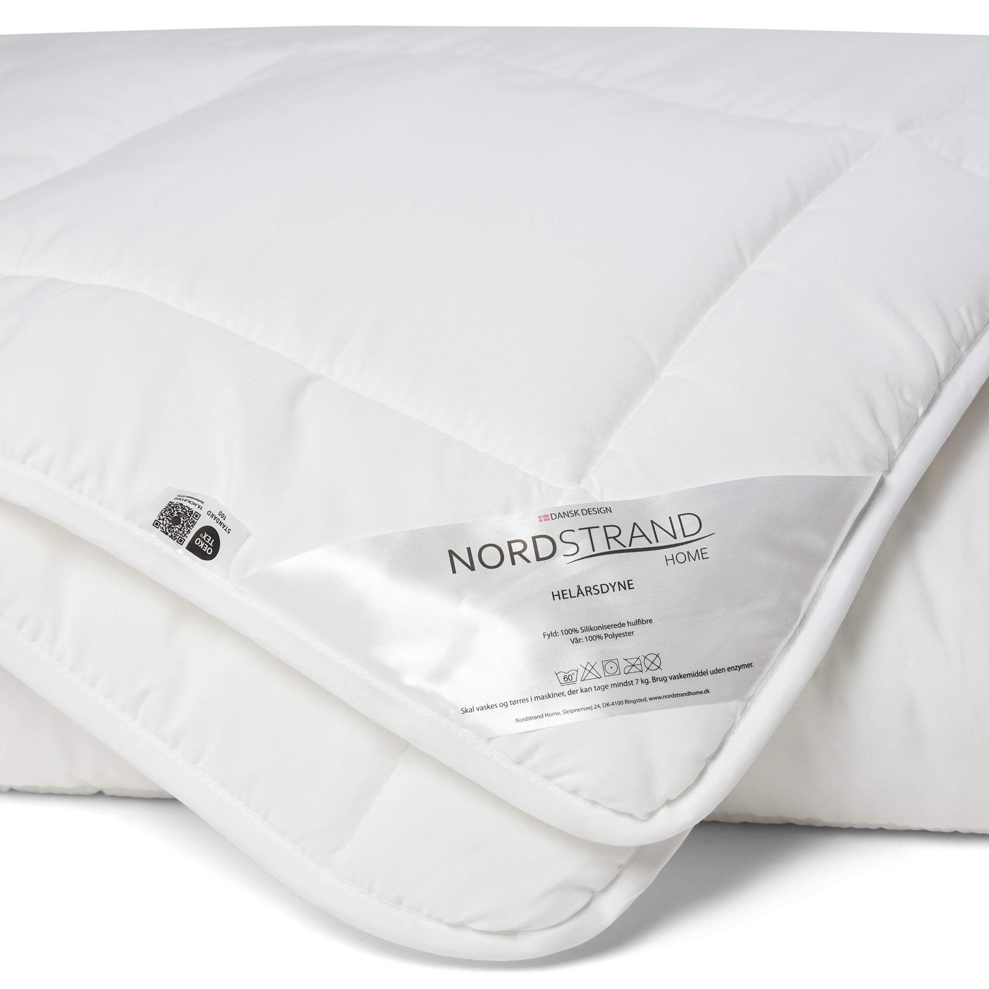 Dynens silikoniserende fiberfyld er fordelt i kassetter, hvor selve fibrene er fremstillet så de minder om de egenskaber man ellers kender fra en dundyne. Når dynen er kassettesyet sikrer man, at fibrene fordeler sig jævnt i dynen og isolerer uden kuldebroer. En af de mange fordele ved en fiberdyne er også, at den er utrolig nem at vedligeholde. Fiberdynen har en meget tæt konstruktion der gør at den tåler at blive vasket igen og igen -og endda ved høje temperaturer. Dette sikrer dig en god, solid og hygiejnisk dyne, med en lang levetid. Kort sagt: En super god kvalitetsdyne der er slidstærk og nem at vedligeholde