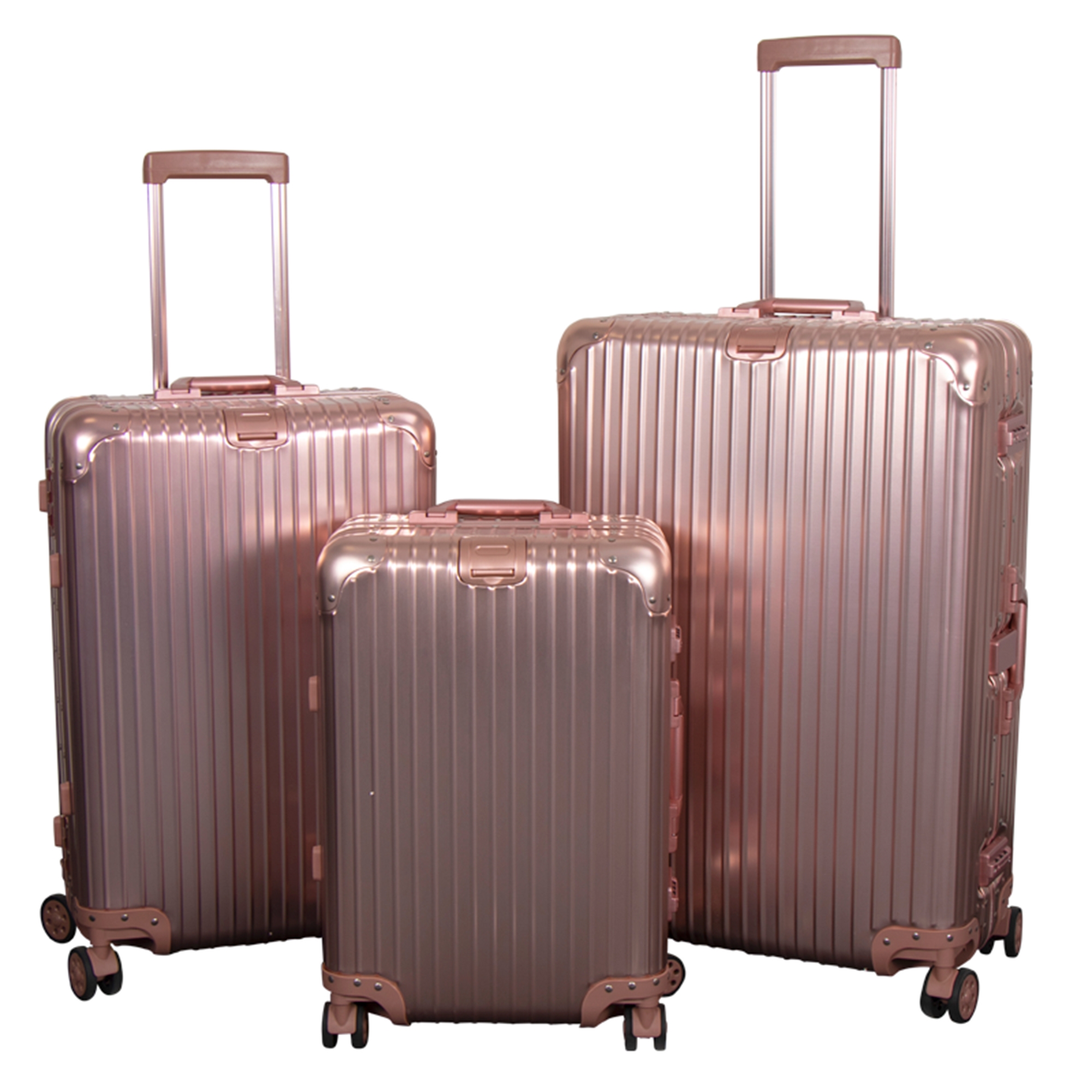 Rejs med lethed og stil med vores praktiske alu kuffertsæt i tre størrelser.