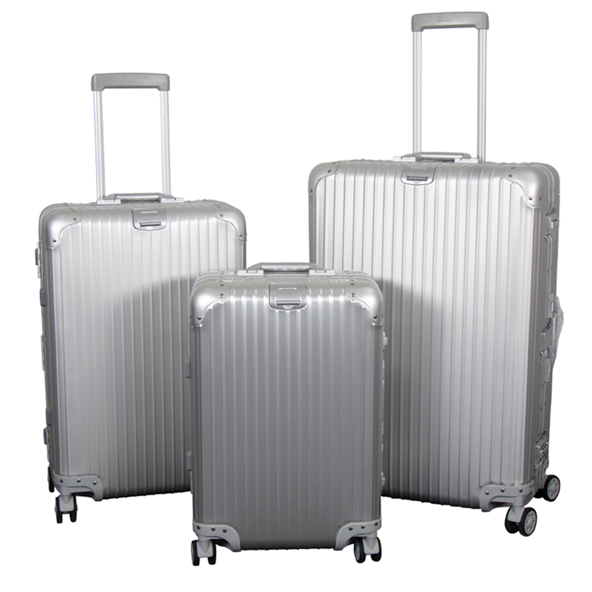 Rejs med lethed og stil med vores praktiske alu kuffertsæt i tre størrelser.