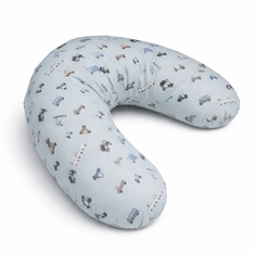 Ammepuden måler 60x50x10 cm og er fyldt med fleksibelt fiberfyld, som former sig efter kroppen og giver stabil støtte under arme, skuldre og ryg. Det hjælper med at aflaste nakke og lænd og skaber en mere behagelig ammestilling - både ved bryst- og flaskemadning.