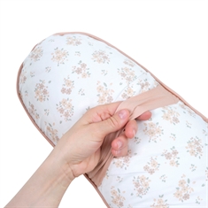 Derudover er der en praktiske bærestrop på ammepuden, som gør det nemt at tage puden med rundt i hjemmet – selv når du har din baby på armen. Ammepudens fleksible fyld giver ergonomisk støtte til både mor og barn, så skuldre, arme og ryg aflastes under amning eller flaskegivning. Samtidig sikrer den, at baby ligger trygt og tæt ind til kroppen. Endnu en fordel ved en ammepude er, at mor har mulighed for at have begge arme fri når den lille spiser.