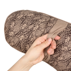 Fyldet består af et fleksibelt fiberfyld, der former sig naturligt efter kroppen og giver optimal støtte – uanset om du ammer, giver flaske eller bruger den som et trygt hvilested for din baby.