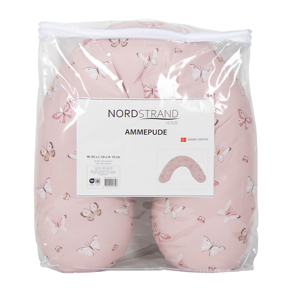 Et lille spædbarn har behov for mad mange gange i døgnet, og i de første måneder af barnets liv kræver det både tid og tålmodighed fra den nybagte mor. Derfor er det af afgørende betydning, at amningen foregår så behageligt som muligt. Denne ammepude fra Nordstrand Home er designet til at give optimal støtte og komfort under amning. Den er udstyret med et blødt, vandafvisende betræk, der er let at aftage og vaske. Med sit søde design af sommerfugle på en lyserød baggrund, er denne pude både sød og stilfuld.