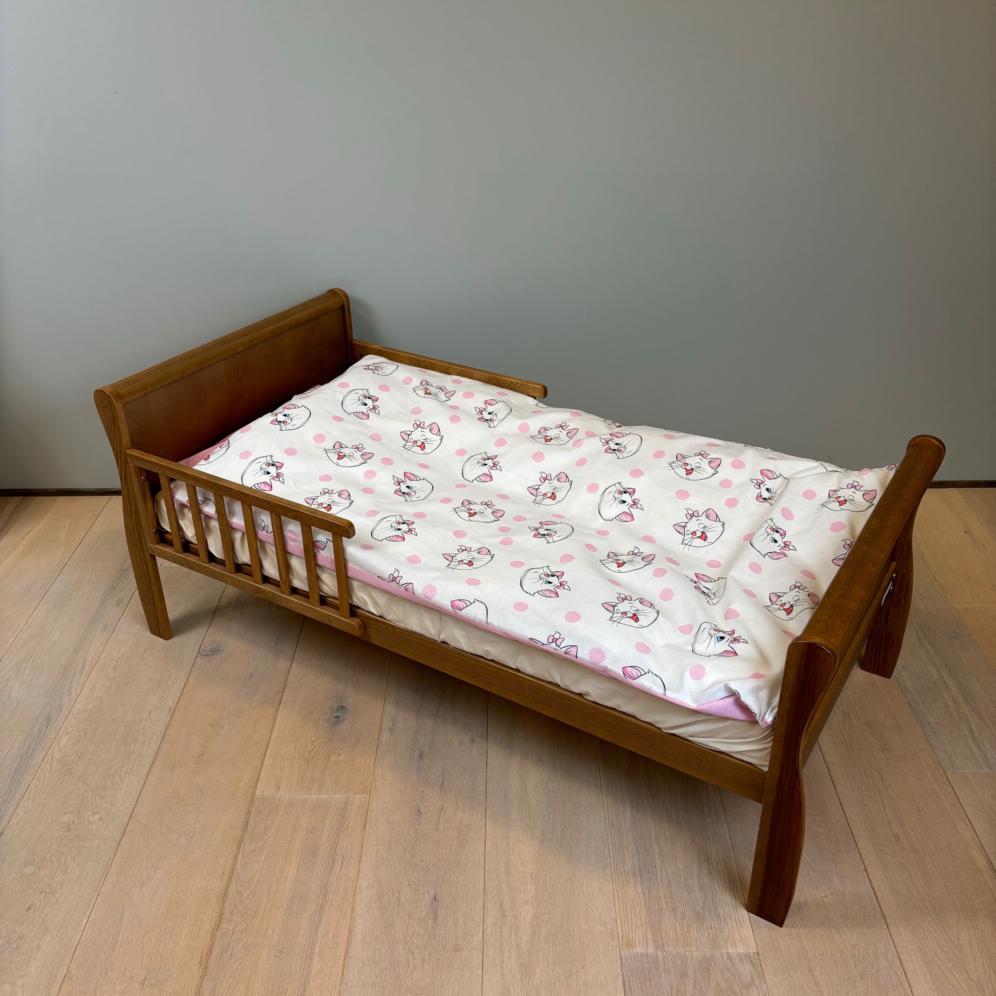 Forside » Sengetøj » Børne sengetøj » Junior sengetøj 100x140 cm Aristocats sengetøj 100x140 cm - Junior sengesæt med Marie - Vendbart motiv - 100% bomulds sengelinned Borg Living 149,95DKK På lager Trustpilot Antal Læg i kurv Se mere fra: Borg Living Artikelnummer: 1921-8 Læs vores sengetøjsguide Se vores store udvalg af lagner Se vores store udvalg af dyner 100x140 Har du spørgsmål til produktet? Blødt & åndbart100% blød bomuldOEKO-TEX® certificeret Dynebetræk: 100x140 cm Pudebetræk: 40x45 cm Materiale: 100% blødt bomuld Farve: Lyserød Motiv: Aristocats Marie Design: Vendbart - Forside med motiv af Marie fra Aristocats og bagside med små motiver Lukning: Dyne med knapper og pudebetræk med overlap Vask: 60° Tørretumbling: Ja Tåler strygning: Ja Certificering: STANDARD 100 by OEKO-TEX® (2011PK0073 AITEX). Din garanti for at produktet er fri for sundhedsskadelig kemi. Blødt junior sengetøj i 100% bomuld, med et smart og genkendeligt design af katten Marie fra Aristocats. Produceret med lette og åndbare bomuldsfibre giver en sengesættet en følelse af blødhed, som gør at dynen vil falde natuligt rundt om dit barn. Balancen i naturlig komfort fra det bløde materiale og det hyggelige Aristocats design, gør dette sæt til en sikker favorit hos dit barn. Forkæl dit barn med dette søde Aristocats Marie junior sengetøj i 100% bomuld – perfekt til små fans af den elskede Disney-klassiker. Sengetøjet er med den charmerende hvide killing Marie, kendt for sin elegance, charme og nuttede attitude. Det bløde bomuldsstof føles behageligt mod huden og sikrer en god og rolig nattesøvn. Materialet er åndbart og slidstærkt, hvilket gør det ideelt til daglig brug. Sengesættet er OEKO-TEX® certificeret, hvilket garanterer, at det er testet for skadelige stoffer og trygt for børn at sove med. Sengetøjet er velegnet til daglig brug, da det er nemt at vaske og tåler 60°. Uden behov for strygning bevarer det sin blødhed og farve, selv efter flere vaske. For barnet bør sengen være et trygt sted og alle elementerne skal til sammen skabe bløde og dejlige omgivelser for barnet at finde ro i. Brug derfor gerne barnets interesser, til at skabe et trygt soverum for barnet. Hos os kan du finde et stort udvalg af tilbehør til sengen og børneværelset, lige fra lagner til dyner, puder, sengetøj og meget mere, og massere af produkter med alle børnenes favoritter på. Alt sammen elementer som kan være med til at skabe det rette sove miljø og værelse til dit barn. Her kan du finde lækre og bløde kvalitets lagner Tilbage til Junior sengetøj 100x140 cm Måske er du også interesseret i: Junior sengetøj 100x140 cm - Blødt hvidt sengesæt i 100% egyptisk bomuldssatin - Turiform sengelinnedHøj kvalitet Ekstra fin, blød & åndbar Jacquardvævet Vejl. udsalgspris : 449,95 Spar : 204,95 499,95 DKK245,00 DKK Boxlagen 70x140 cm - Hvid - 100% ekstra fin bomuldssatin - Faconlagen til juniormadrasBoxlagen - Hvid 100% bomuldssatin 70x140x15 cm Vejl. udsalgspris : 349,95 Spar : 100,00 349,95 DKK249,95 DKK Junior rullemadras - 70x140 cm - Kogeægte Bomuld - Borg LivingÅndbart og allergivenlig Blødt bomuld OEKO-TEX® certificeret 349,95 DKK199,95 DKK Juniordyne - Moskusdun - 100x140 cm - Helårs junior dyne - Borg Living dundyne100% moskusdundyne Bæreevne: over 12 Helårsdyne Vejl. udsalgspris : 1.599,95 Spar : 1.104,95 1.599,95 DKK495,00 DKK