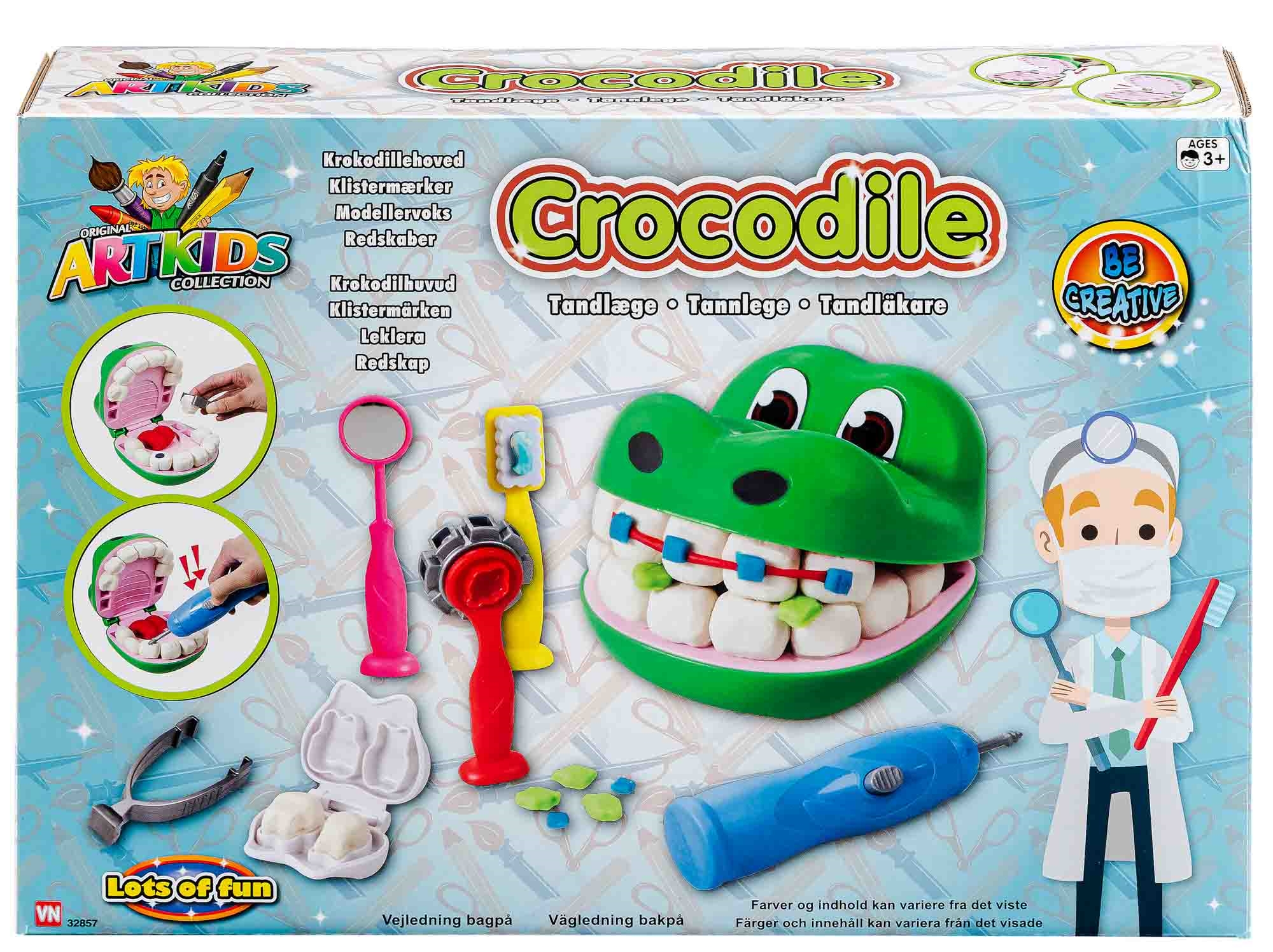 Forside » Legetøj » Forårsleg ARTKIDS Krokodilletandlæge - Kreativ Leg med tænder og Fantasi HOME-TEX Skarp pris: 129,95DKK Få på lager Trustpilot Antal Læg i kurv Se mere fra: HOME-TEX Artikelnummer: LEG-VN32857 Har du spørgsmål til produktet? Modellervoks sæt med krokodilletandlægeUdvikler kreativitet og finmotorikPerfekt til leg alene eller med venner Leg tandlæge med en krokodille ARTKIDS krokodille tandlæge er en underholdende og sjov aktivitet for børn, hvor de kan lege tandlæge. Det er et populært valg til både leg alene og sammen med andre. Indhold og funktioner Modellervoks og forme Modellervokssæt med 5x50 g dåser modellervoks og tilbehør, der gør det nemt at lege tandlæge og være kreativ. Inspirerer til rolleleg Børn kan lege tandlæge og opfinde deres egne legeuniverser. Børn kan eksperimentere med farver, former og kombinationer. Formning og arbejde med modellervoks forbedrer barnets kreativitet og præcision. Perfekt til leg og underholdning Sættet egner sig både til selvstændig leg og til fælles aktiviteter med venner eller familie. Det er også en oplagt gaveidé. Tilbage til Forårsleg