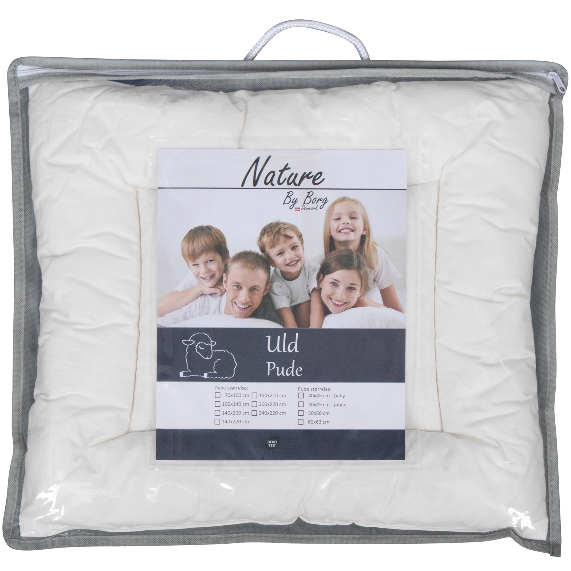 Med Nature By Borg baby hovedpude i uld, får du en pude, der er fyldt med 100% naturligt fransk uld, der er kendt for sine fantastiske evner til at regulere temperaturen – uanset om det er koldt eller varmt.