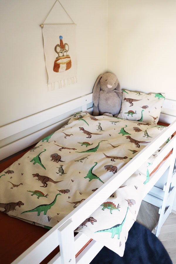 Forside » Sengetøj » Børne sengetøj » Baby sengetøj 70x100 cm Baby sengetøj 70x100 cm - Dinosaurer sengetøj - 100% blød bomuld Spar60% Borg Living 249,9599,95DKKSpar 150,- På lager Trustpilot Antal Læg i kurv Se mere fra: Borg Living Artikelnummer: 1888-7 Læs vores sengetøjsguide Se vores store udvalg af lagner Se vores store udvalg af dyner 70x100 Har du spørgsmål til produktet? Let vedligeholdelse100% blødt bomuldOEKO-TEX® certificeret Dynebetræk: 70x100 cm - baby sengesæt Pudebetræk: 40x45 cm Materiale: 100% blød bomuld Vævning: Ekstra fin 230TC (Thread count = antal tråde pr. kvadrattomme) Farve: Beige Motiv: Dinosaur Lukning: Dyne med knapper, pudebetræk med overlap Vask: 60° Tørretumbling: Ja Tåler strygning: Ja Certificering: STANDARD 100 by OEKO-TEX® (2016OK0709 AITEX). Din garanti for at produktet er fri for sundhedsskadelig kemi. Sødt babysengetøj produceret i 100% bomuld, uden skadelig kemi med forskellige dinosaurer. Sengesættet her er af høj kvalitet, har en dejlig blødhed og tåler gentagne vask. Det fine motiv giver babydyne sengesæt et sødt udseende og hyggeligt touch. Sejt sengesæt med all-over motiv af forskellige dinosaurer. Baby sengetøjet passer til en almindelig babydyne størrelse og kan bruges i sengen, i babynesten, i barnevognen eller hvor end dynen medtages. Babydynen er ofte fast omkring barnet i mange af døgnets timer, da den skaber stor ro, genkendelighed, tryghed og varme for babyen - ikke kun den første tid, men ofte op til 2-3 års alderen. Det bruges derfor rigtig meget og bliver vasket ofte, og derfor ønsker de fleste også blødt sengetøj i bomuld af høj kvalitet. Dette bløde baby sengetøj er lavet af 100% blød bomuld i høj kvalitet, som indeholder gode naturlige egenskaber, som alle tilføjer noget godt til sengesættet. Blandt andet er bomuld åndbart, yder høj absorbering, dejligt blødt og behageligt rundt om barnets krop og mod huden. Dynebetrækket er produceret med smarte trykknapper, mens pudebetrækket har en praktisk overlapning. Derudover er det nemt at vaske, hvilket er også en lille gave når det kommer til babyer og småfolk, da tid nogen gange kan være en mangelvare med en lille baby. Se også vores store udvalg af flot og stilfuldt baby tilbehør her Vi anbefaler at man har mere end et sæt sengetøj til baby. Med en lille baby sker der ofte uheld, af flere arter. Det er derfor dejligt at have et ekstra sæt liggende, lige til at skifte når uheldet sker. De fleste mødre oplever at 3-4 sæt baby sengetøj er rart at have i skabet. Det samme gælder baby lagner, både til barnevogn og babysengen. Herudover kan det være rigtig rart at have en ekstra babydyne liggende, da disse ofte er lidt længere tid om at tørre. På denne måde kan du være sikker på dit barn ikke mangler sengelinned, når der skal vaskes eller klokken er sent om natten. Du finder vores sortiment af kvalitets lagner her til børn her Tilbage til Baby sengetøj 70x100 cm Måske er du også interesseret i: Babydyne 70x100 cm - Moskusdun helårs baby dyne - Borg Living dyne100% Moskusdun - Borg Living Bæreevne: Over 12 Babydyne Vejl. udsalgspris : 1.199,95 Spar : 804,95 1.199,95 DKK395,00 DKK