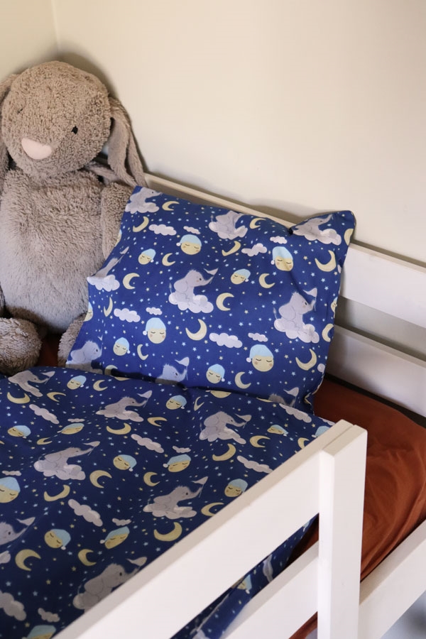 Baby sengetøj 70x100 cm - Elefanter, stjerner & måner - 100% blød bomuld