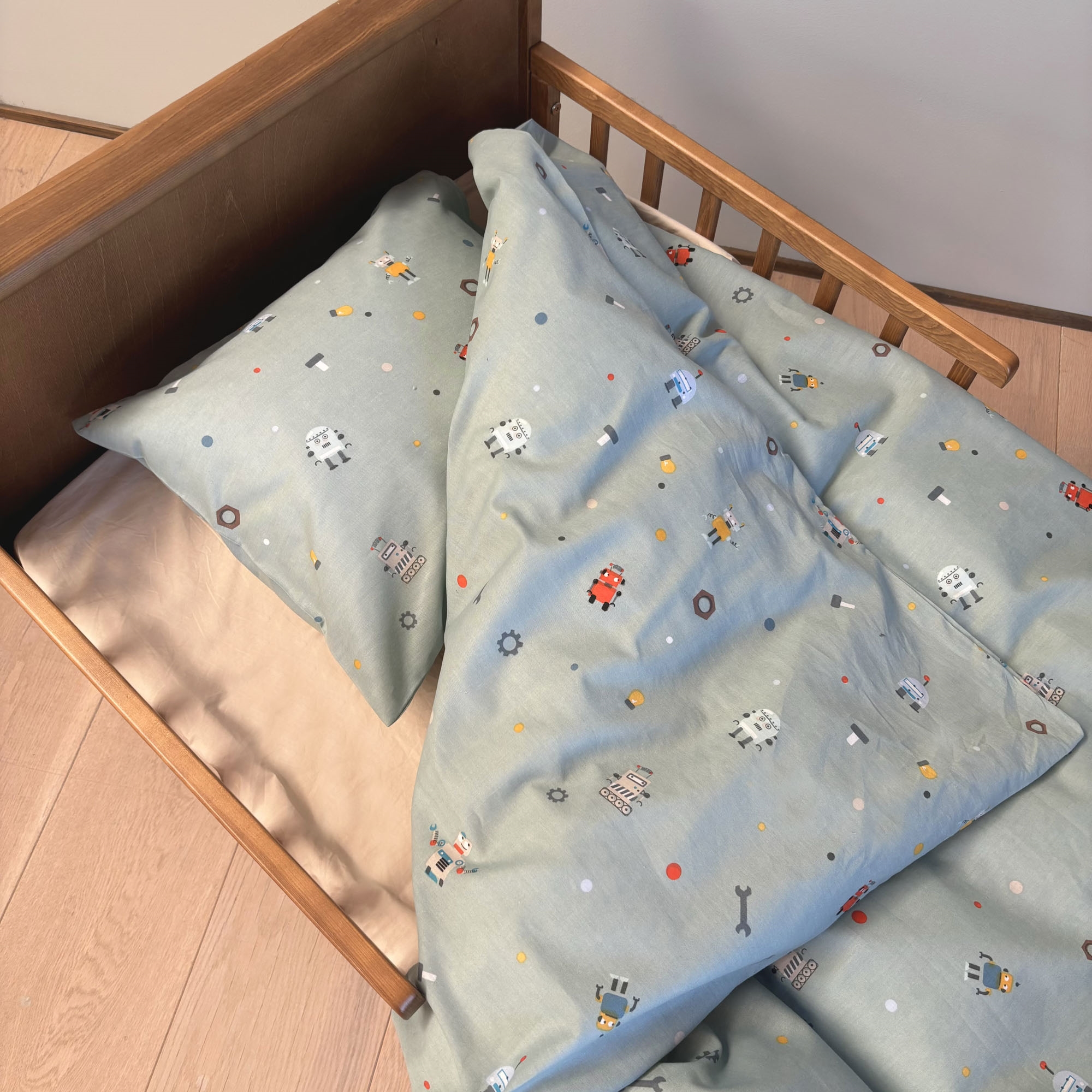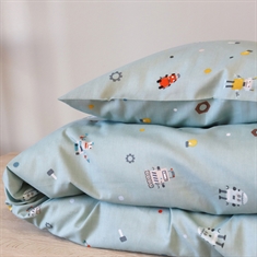 Forside » Sengetøj » Børne sengetøj » Baby sengetøj 70x100 cm Baby sengetøj 70x100 cm - Blåt sengesæt med små robotter - 100% blødt bomulds sengelinned Spar47% By Mats 149,9579,95DKKSpar 70,- På lager Trustpilot Antal Læg i kurv Se mere fra: By Mats Artikelnummer: 12152-7 Læs vores sengetøjsguide Se vores store udvalg af lagner Se vores store udvalg af dyner 70x100 Har du spørgsmål til produktet? Dejligt blødt Åndbart og behageligtFri for kemi - OEKO-TEX® certificeret Dynebetræk: 70x100 cm - baby sengesæt Pudebetræk: 40x45 cm Materiale: 100% blød bomuld Farve: Blå Motiv: Små robotter Lukning: Dyne med knapper, pudebetræk med overlap Vask: 60° Tørretumbling: Ja Tåler strygning: Ja Certificering: STANDARD 100 by OEKO-TEX® (2016OK0709). Din garanti for at produktet er fri for sundhedsskadelig kemi. Blødt baby sengetøj i 100% bomuld, med små robotter. Produceret med lette og åndbare bomuldsfibre giver det sengesættet en følelse af blødhed, der gør at dynen vil falde natuligt rundt om dit barn. Balancen i naturlig komfort fra det bløde materiale og det hyggelige design, gør dette sæt til en sikker favorit hos dit barn. Skønt sengesæt med super fint print af robotter. Dette flotte all-over print i dæmpede farve, skaber en afslappende stemning og hyggelige omgivelser til søvn. Baby sengetøjet passer til en almindelig babydyne størrelse og kan bruges i sengen, i babynesten, i barnevognen eller hvor end dynen medtages. Babydynen er ofte fast omkring barnet i mange af døgnets timer, da den skaber stor ro, genkendelighed, tryghed og varme for babyen - ikke kun den første tid, men ofte op til 2-3 års alderen. Det bruges derfor rigtig meget og bliver vasket ofte, og derfor ønsker de fleste også blødt sengetøj i bomuld af høj kvalitet. Dette bløde baby sengetøj er lavet af 100% blød bomuld i høj kvalitet, som indeholder gode naturlige egenskaber, som alle tilføjer noget godt til sengesættet. Blandt andet er bomuld åndbart, yder høj absorbering, dejligt blødt og behageligt rundt om barnets krop og mod huden. Dynebetrækket er produceret smarte trykknapper, mens pudebetrækket har en praktisk overlapning. Derudover er det nemt at vaske, hvilket er også en lille gave når det kommer til babyer og småfolk, da tid nogen gange kan være en mangelvare med en lille baby. Se også vores store udvalg af flot og stilfuldt baby tilbehør her Vi anbefaler at man har mere end et sæt sengetøj til baby. Med en lille baby sker der ofte uheld, af flere arter. Det er derfor dejligt at have et ekstra sæt liggende, lige til at skifte når uheldet sker. De fleste mødre oplever at 3-4 sæt baby sengetøj er rart at have i skabet. Det samme gælder baby lagner, både til barnevogn og babysengen. Herudover kan det være rigtig rart at have en ekstra babydyne liggende, da disse ofte er lidt længere tid om at tørre. På denne måde kan du være sikker på dit barn ikke mangler sengelinned, når der skal vaskes eller klokken er sent om natten. Du finder vores sortiment af kvalitets lagner her til børn her Tilbage til Baby sengetøj 70x100 cm Måske er du også interesseret i: Babydyne 70x100 cm - Moskusdun helårs baby dyne - Borg Living dyne100% Moskusdun - Borg Living Bæreevne: Over 12 Babydyne Vejl. udsalgspris : 1.199,95 Spar : 804,95 1.199,95 DKK395,00 DKK