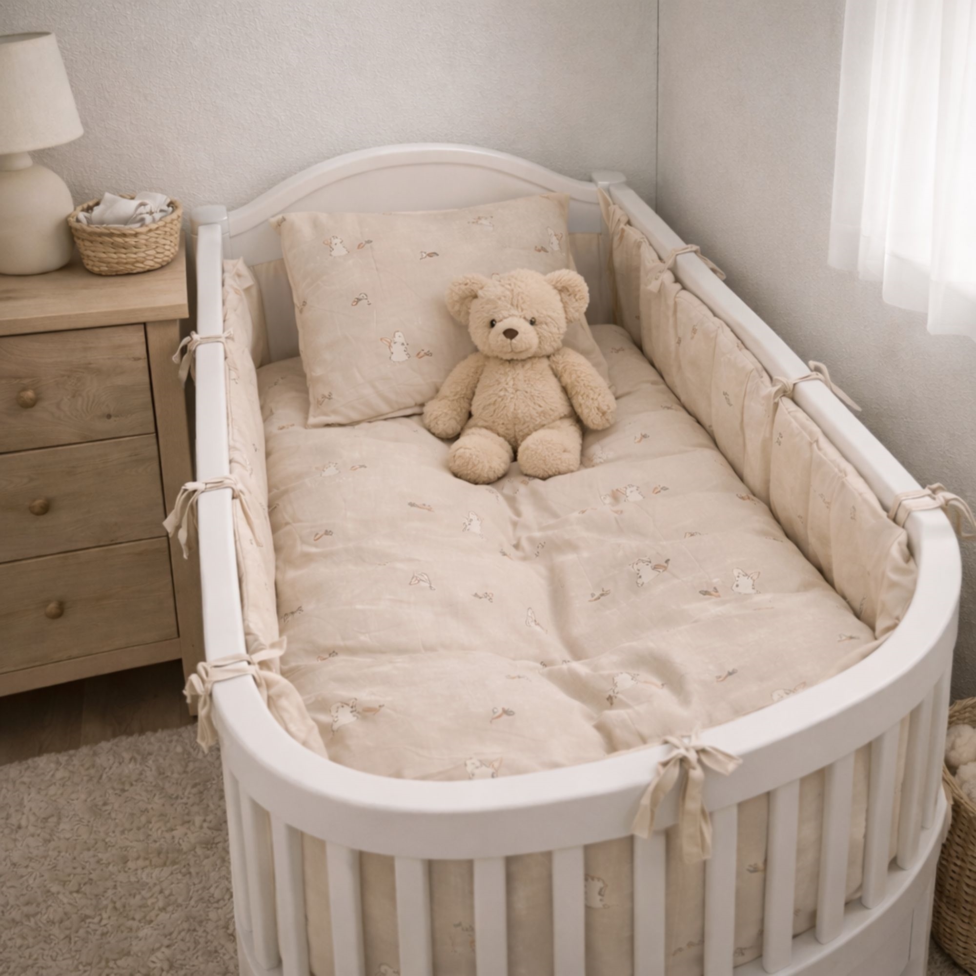 Dette bløde baby sengetøj er lavet af 100% blød bomuld i høj kvalitet, som indeholder gode naturlige egenskaber, som alle tilføjer noget godt til sengesættet. Blandt andet er bomuld åndbart, yder høj absorbering, dejligt blødt og behageligt rundt om barnets krop og mod huden. Derudover er det nemt at vaske, hvilket er også en lille gave når det kommer til babyer og småfolk, da tid nogen gange kan være en mangelvare med en lille baby.
