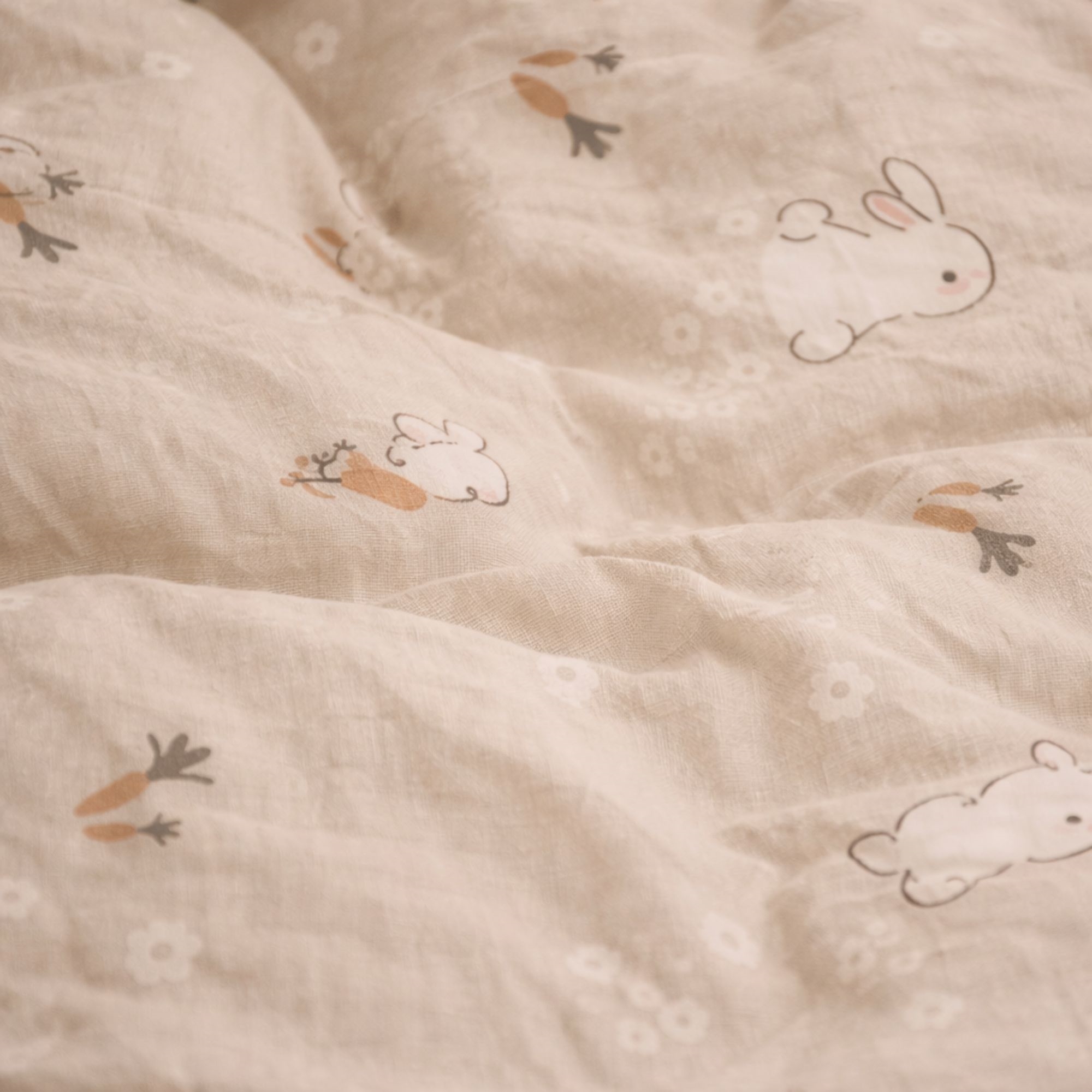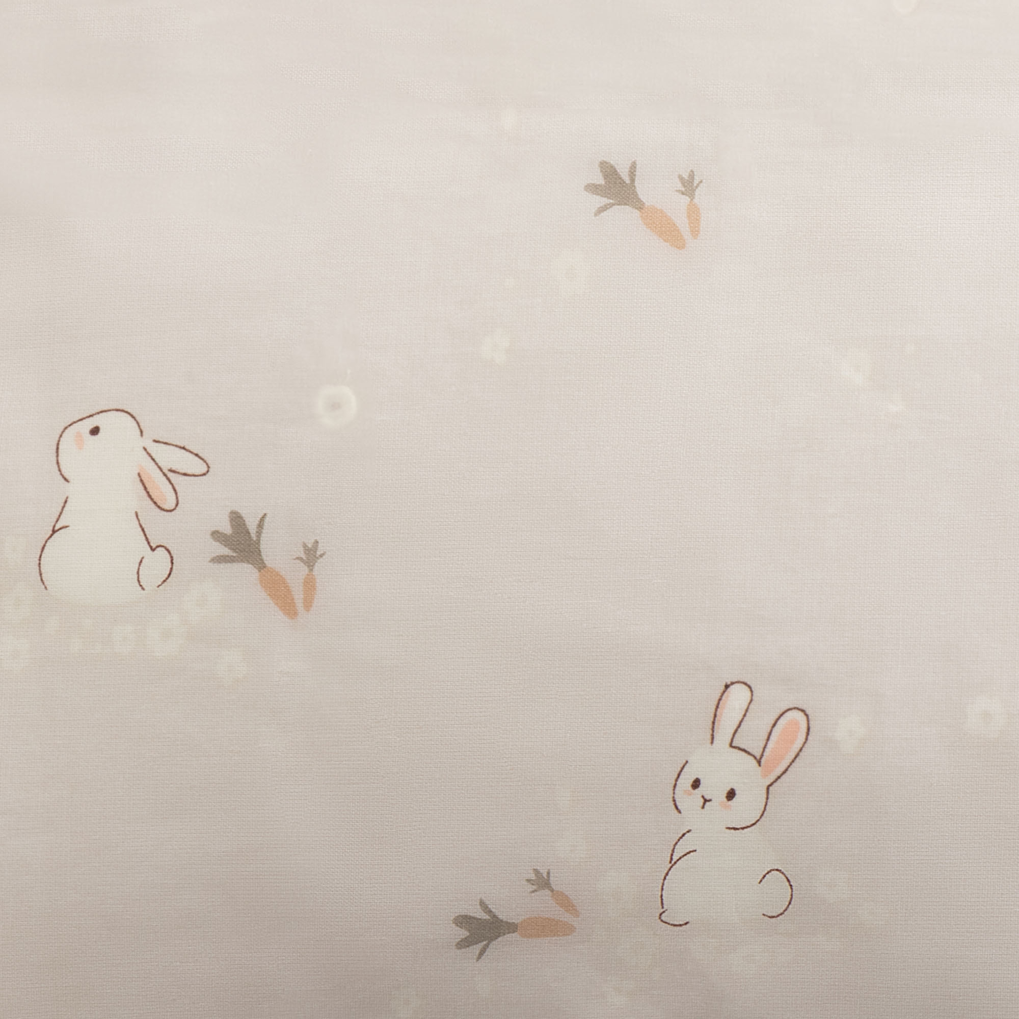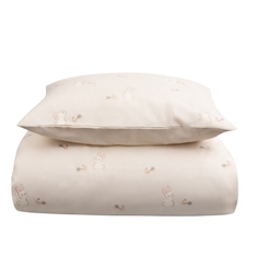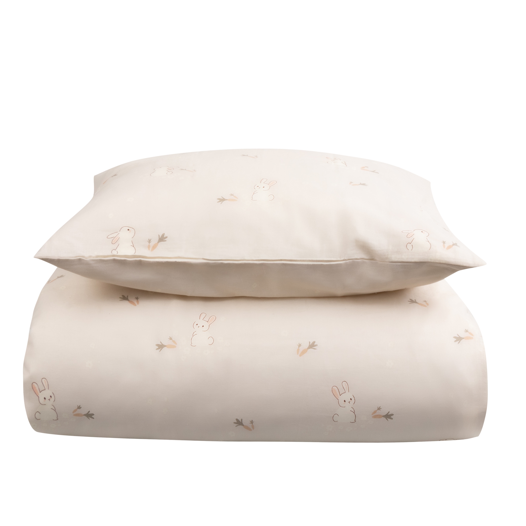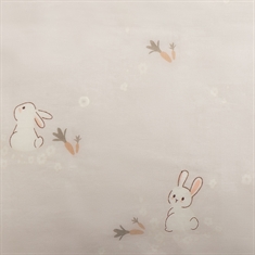 Skønt sengesæt med print af kaniner. Baby sengetøjet passer til en almindelig babydyne størrelse og kan bruges i sengen, i babynesten, i barnevognen eller hvor end dynen medtages. Babydynen er ofte fast omkring barnet i mange af døgnets timer, da den skaber stor ro, genkendelighed, tryghed og varme for babyen - ikke kun den første tid, men ofte op til 2-3 års alderen. Det bruges derfor rigtig meget og bliver vasket ofte, og derfor ønsker de fleste også blødt sengetøj i bomuld af høj kvalitet.