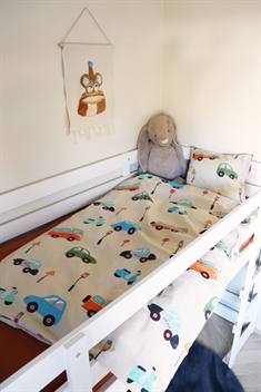 Forside » Sengetøj » Børne sengetøj » Baby sengetøj 70x100 cm Baby sengetøj 70x100 cm - Biler, lyssignaler & skilte - 100% blød bomuld - Sengetøj med biler Spar70% Borg Living 249,9575,00DKKSpar 175,- På lager Trustpilot Antal Læg i kurv Se mere fra: Borg Living Artikelnummer: 1894-7 Læs vores sengetøjsguide Se vores store udvalg af lagner Se vores store udvalg af dyner 70x100 Har du spørgsmål til produktet? Let vedligeholdelse100% blødt bomuldOEKO-TEX® certificeret Dynebetræk: 70x100 cm - baby sengesæt Pudebetræk: 40x45 cm Materiale: 100% blød bomuld Vævning: Ekstra fin 230TC (Thread count = antal tråde pr. kvadrattomme) Farve: Beige Motiv: Biler Lukning: Dyne med knapper, pudebetræk med overlap Vask: 60° Tørretumbling: Ja Tåler strygning: Ja Certificering: STANDARD 100 by OEKO-TEX® (2016OK0709 AITEX). Din garanti for at produktet er fri for sundhedsskadelig kemi. Sødt babysengetøj produceret i 100% bomuld, uden skadelig kemi biler, lyssignaler og skilte. Sengesættet her er af høj kvalitet, har en dejlig blødhed og tåler gentagne vask. Det fine motiv giver babydyne sengesæt et sødt udseende og hyggeligt touch. Sødt sengesæt med all-over motiv af biler, lyssignaler og skilte. Baby sengetøjet passer til en almindelig babydyne størrelse og kan bruges i sengen, i babynesten, i barnevognen eller hvor end dynen medtages. Babydynen er ofte fast omkring barnet i mange af døgnets timer, da den skaber stor ro, genkendelighed, tryghed og varme for babyen - ikke kun den første tid, men ofte op til 2-3 års alderen. Det bruges derfor rigtig meget og bliver vasket ofte, og derfor ønsker de fleste også blødt sengetøj i bomuld af høj kvalitet. Dette bløde baby sengetøj er lavet af 100% blød bomuld i høj kvalitet, som indeholder gode naturlige egenskaber, som alle tilføjer noget godt til sengesættet. Blandt andet er bomuld åndbart, yder høj absorbering, dejligt blødt og behageligt rundt om barnets krop og mod huden. Dynebetrækket er produceret med smarte trykknapper, mens pudebetrækket har en praktisk overlapning. Derudover er det nemt at vaske, hvilket er også en lille gave når det kommer til babyer og småfolk, da tid nogen gange kan være en mangelvare med en lille baby. Se også vores store udvalg af flot og stilfuldt baby tilbehør her Vi anbefaler at man har mere end et sæt sengetøj til baby. Med en lille baby sker der ofte uheld, af flere arter. Det er derfor dejligt at have et ekstra sæt liggende, lige til at skifte når uheldet sker. De fleste mødre oplever at 3-4 sæt baby sengetøj er rart at have i skabet. Det samme gælder baby lagner, både til barnevogn og babysengen. Herudover kan det være rigtig rart at have en ekstra babydyne liggende, da disse ofte er lidt længere tid om at tørre. På denne måde kan du være sikker på dit barn ikke mangler sengelinned, når der skal vaskes eller klokken er sent om natten. Du finder vores sortiment af kvalitets lagner her til børn her Tilbage til Baby sengetøj 70x100 cm Måske er du også interesseret i: Babydyne 70x100 cm - Moskusdun helårs baby dyne - Borg Living dyne100% Moskusdun - Borg Living Bæreevne: Over 12 Babydyne Vejl. udsalgspris : 1.199,95 Spar : 804,95 1.199,95 DKK395,00 DKK