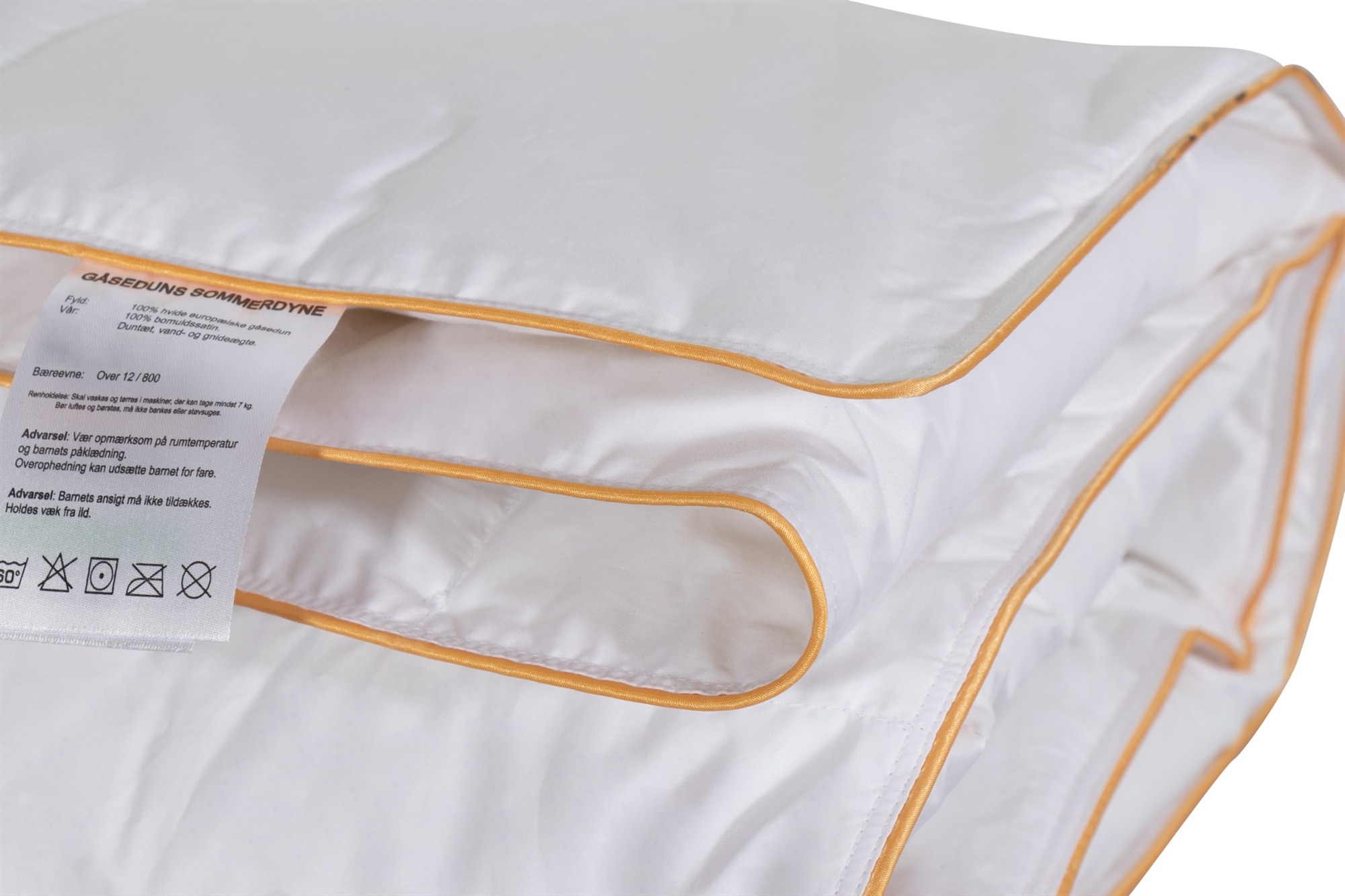 Forside » Indretning » Børneværelset » Babydyne 70x100 cm Baby sommerdyne med 100% gåsedun - 70x100 cm - Bæreevne 12 - Sommer babydyne - Borg Living Spar60% Borg Living 999,95399,95DKKSpar 600,- På lager Trustpilot Vælg størrelse Vælg variant Antal Læg i kurv Se mere fra: Borg Living Artikelnummer: BL246 Læs vores dyneguide Læs om vedligeholdelse af dyner og puder Se vores store udvalg af puder Har du spørgsmål til produktet? Gåsedundyne - Borg LivingBæreevne: over 12100% Europæiske gåsedun Størrelse: 70x100 cm baby dyne Type: Sommerdyne Fyld: 100% hvide og rene europæiske gåsedun Brand: Borg Living Bæreevne: Over 12 (Gammel målemetode) Bæreevne: 800 (Ny målemetode) Fyldvægt: 80g Bolster: 100 % Bomuldssatin Konstruktion: 3x5 kassettedyne med guld piping kant Vask: 60° (Vigtigt at anvende Enzymfrit vaskemiddel) Tørretumbling: Skal tørretumbles med tørrebolde Garanti: 5 år Certificering: NOMITE - Allergivenlig og fri for husstøvmider Certificering: Downafresh Greenline - behandlet i henhold til økologiske kriterier Certificering: Down pass - 100% rene dun Certificering: STANDARD 100 by OEKO-TEX® (HKD18299 TESTEX) / BJ025 147484 TESTEX Kølig og luftig sommerdyne med europæiske gåsedun - fra danske Borg Living. Denne babydyne er fyldt med 80g. hvide, bløde og luftige gåsedun, der giver en fantastisk god sommerdyne. Dynen har en bæreevne på over 12 og er særdeles velegnet til baby, da de bløde og lette dun får dynen til at falde let henover barnets krop. Dynen er syet i kassetter, så dunene fordeler sig jævnt i dynen. Sommerdynen har et dejligt blødt bolster i 100% bomuldssatin der er så tætvævet, at støvmider ikke kan trænge igennem. BL246 har en lang række certificeringer, som er din garanti for en god og hygiejnisk kvalitetsdyne. Dynen er NOMITE certificeret, hvilket betyder at dynen er yderst velegnet til allergikere, idet den er fri for husstøvmider. Ligeledes er dynen Downafresh certificeret – En certificering der garanterer dig, at de dun der er anvendt under produktionen, er vasket og rengjorte efter de strenge krav om europæiske standarter. Downafresh certificeringen garanterer også, at de indsamlede dun lever op til lovgivningen omkring ordentlig dyrevelfærd. Det danske brand Borg Living producerer eksklusive serier af dyner, puder og boligtekstiler til dit hjem. Brandet som er etableret i 2013 og er bl.a. kendt for deres nytænkning indenfor kvalitet og design. Borg Livings fantastiske produkter, bidrager til en optimal og behagelig nattesøvn samt udsmykker dit hjem med moderne og lækkert boligtilbehør. Tilbage til Babydyne 70x100 cm