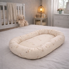 Behagelig og tryg babynest 86x46 cm i sandfarvet med kaniner