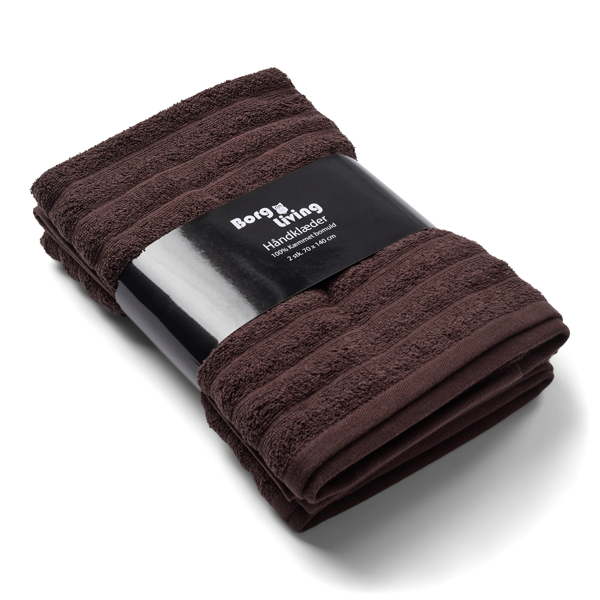 Forside » Håndklæder Badehåndklæder 2 stk. i 100% kæmmet bomuld - Bløde brune håndklæder 70x140 cm fra Borg Living Lotus Spar59% Borg Living 399,95165,00DKKSpar 235,- På lager Trustpilot Antal Læg i kurv Se mere fra: Borg Living Artikelnummer: H866-4 Læs vores håndklæde guide Se vores store udvalg af tilbehør til badeværelset Har du spørgsmål til produktet? Høj absorberingsevneNordic designOEKO-TEX® certificeret Størrelse: 2 stk. 70x140 cm Type: Badehåndklæder Farve: Brun Design: Nordic Brand: Borg Living Strop til ophæng: Ja Kvalitet: 100% kæmmet bomuld Vægt: 550g Vask: 60° Tørretumbling: Ja Certificering: STANDARD 100 by OEKO-TEX® (2020OK1190) Din garanti for, at produktet er testet og godkendt - Hvilket sikrer at produktet er fri for skadelige stoffer og kemikalier. 2 stk. Badehåndklæder Badehåndklæderne er fremstillet af 100% fin kæmmet bomuld, hvilket gør håndklæderne ekstra bløde og lækre og en dejlig følelse mod huden samtidig med, at de har en høj absorberingsevne. Håndklæderne er vævet med et elegant design med striber som hedder Nordic og giver et klassisk og stilfuldt udtryk, som passer ind i ethvert badeværelse. Find lækre badekåber her Oeko-Tex certificeret Håndklæderne er OEKO-TEX certificeret, hvilket betyder, at de er testet fri for skadelige kemikalier og er sikkert at bruge. Det er et tegn på høj kvalitet og ansvarlig produktion. Dette er ikke kun godt for miljøet, men også for din hud, da det reducerer risikoen for allergiske reaktioner og hudirritationer. Vi anbefaler altid, at helt nye håndklæder lægges i blød i koldt vand før første vask - Således forbedre du håndklædernes absorberingsevne. Det danske brand Borg Living producerer eksklusive serier af dyner, puder, håndklæder og boligtekstiler til dit hjem. Brandet som er etableret i 2013 og er bl.a. kendt for deres nytænkning indenfor kvalitet og design. Borg Livings fantastiske produkter, bidrager til en optimal og behagelig nattesøvn samt udsmykker dit hjem med moderne og lækkert boligtilbehør. Find alt til badeværelset her Tilbage til Håndklæder