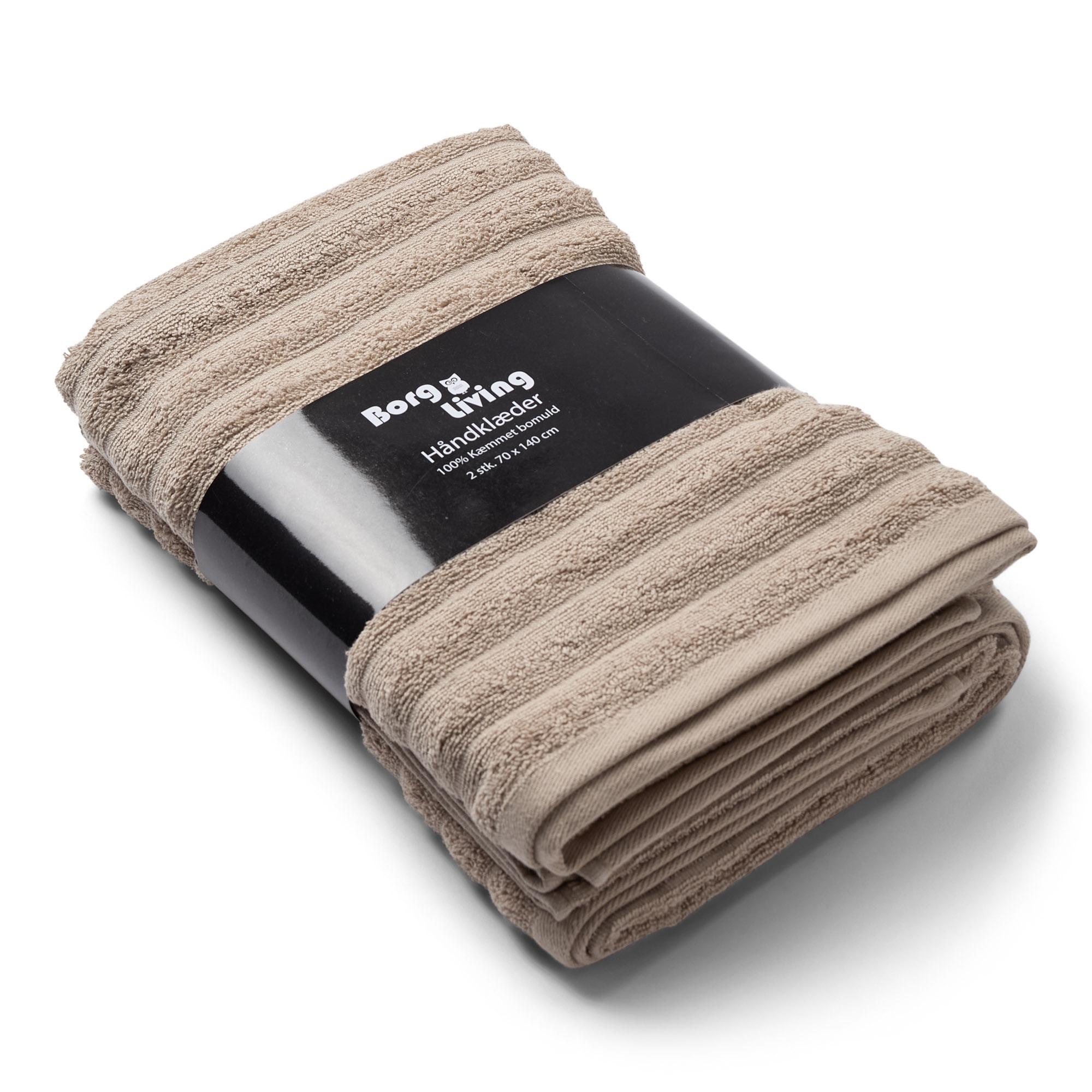 Forside » Håndklæder Badehåndklæder 2 stk. i 100% kæmmet bomuld - Bløde sand farvet håndklæder 70x140 cm fra Borg Living Lotus Spar59% Borg Living 399,95165,00DKKSpar 235,- På lager Trustpilot Antal Læg i kurv Se mere fra: Borg Living Artikelnummer: H872-4 Læs vores håndklæde guide Se vores store udvalg af tilbehør til badeværelset Har du spørgsmål til produktet? Høj absorberingsevneNordic designOEKO-TEX® certificeret Størrelse: 2 stk. 70x140 cm Type: Badehåndklæder Farve: Sand Design: Nordic Brand: Borg Living Strop til ophæng: Ja Kvalitet: 100% kæmmet bomuld Vægt: 550g Vask: 60° Tørretumbling: Ja Certificering: STANDARD 100 by OEKO-TEX® (2020OK1190) Din garanti for, at produktet er testet og godkendt - Hvilket sikrer at produktet er fri for skadelige stoffer og kemikalier. 2 stk. Badehåndklæder Badehåndklæderne er fremstillet af 100% fin kæmmet bomuld, hvilket gør håndklæderne ekstra bløde og lækre og en dejlig følelse mod huden samtidig med, at de har en høj absorberingsevne. Håndklæderne er vævet med et elegant design med striber som hedder Nordic og giver et klassisk og stilfuldt udtryk, som passer ind i ethvert badeværelse. Find lækre badekåber her Oeko-Tex certificeret Håndklæderne er OEKO-TEX certificeret, hvilket betyder, at de er testet fri for skadelige kemikalier og er sikkert at bruge. Det er et tegn på høj kvalitet og ansvarlig produktion. Dette er ikke kun godt for miljøet, men også for din hud, da det reducerer risikoen for allergiske reaktioner og hudirritationer. Vi anbefaler altid, at helt nye håndklæder lægges i blød i koldt vand før første vask - Således forbedre du håndklædernes absorberingsevne. Det danske brand Borg Living producerer eksklusive serier af dyner, puder, håndklæder og boligtekstiler til dit hjem. Brandet som er etableret i 2013 og er bl.a. kendt for deres nytænkning indenfor kvalitet og design. Borg Livings fantastiske produkter, bidrager til en optimal og behagelig nattesøvn samt udsmykker dit hjem med moderne og lækkert boligtilbehør. Find alt til badeværelset her Tilbage til Håndklæder