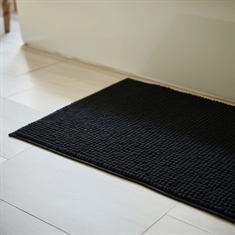 Giv dit badeværelse et stilrent og moderne løft med denne elegante bademåtte i klassisk sort. Den enkle farve skaber et roligt udtryk og passer perfekt ind i både lyse og mørke badeværelser. Den bløde overflade i 100% polyester føles behagelig under fødderne og giver en komfortabel start på dagen. Samtidig absorberer måtten fugt effektivt og hjælper med at holde gulvet tørt efter badet. Bademåtten er perfekt til hverdagen - den slidstærke kvalitet gør den modstandsdygtig over for gentagen brug og vask, så den bevarer både form og udseende over tid. Den skridsikre bagside i SEBS sikrer, at måtten ligger stabilt på gulvet og giver ekstra tryghed i badeværelset. En praktisk og stilfuld løsning, der kombinerer komfort, funktion og holdbarhed i én.