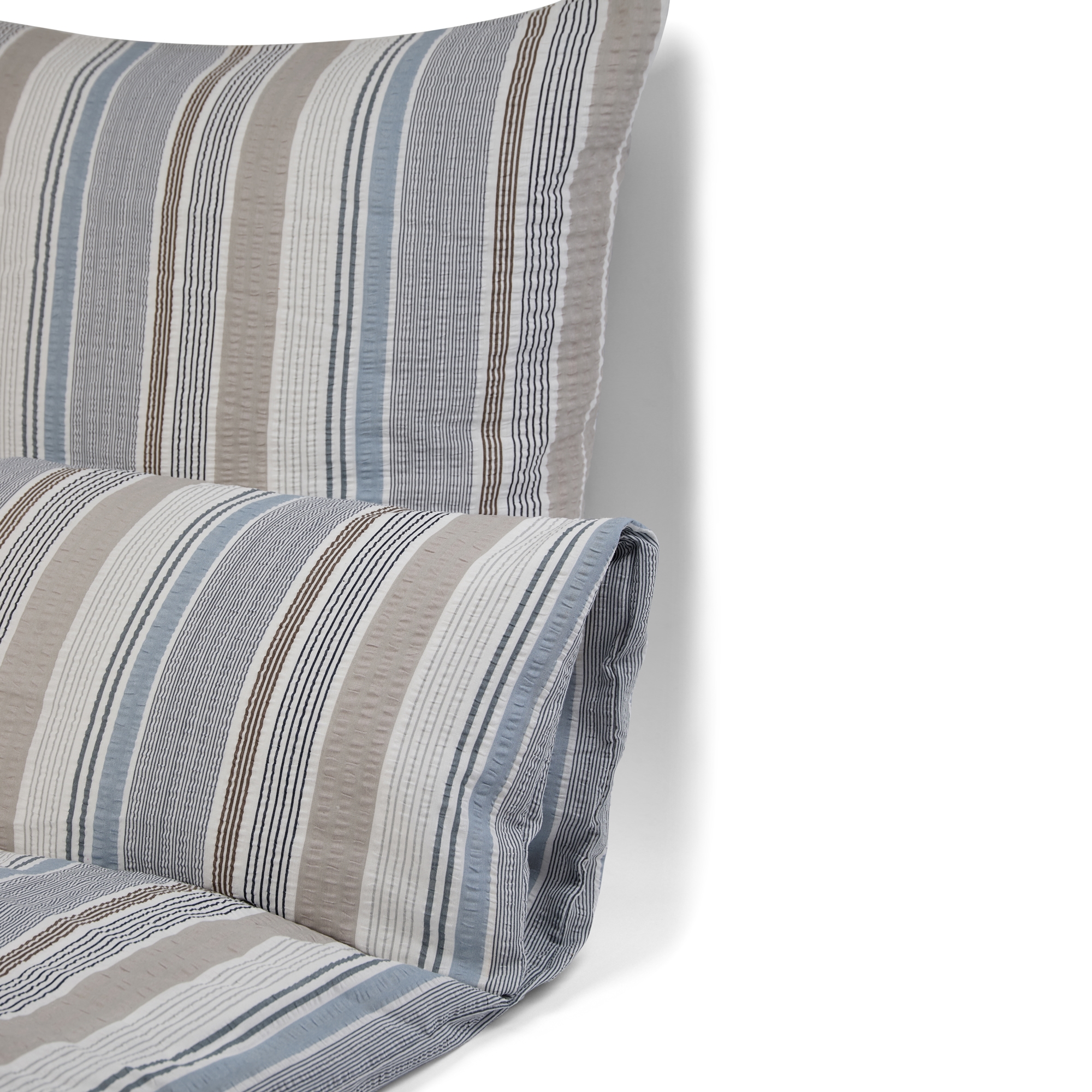 Forside » Sengetøj Bæk og Bølge sengetøj 140x200 cm - Blåt stribet sengesæt - 100% bomuld - Krepp sengelinned - By Night Spar58% By Night 599,95249,95DKKSpar 350,- På lager Trustpilot Antal Læg i kurv Se mere fra: By Night Artikelnummer: 284-1 Har du spørgsmål til produktet? 100% åndbar bomuldLet og luftigt vævningStribet design Dynebetræk: 140x200 cm Pudebetræk: 1 stk. á 60x63 cm Materiale: 100% bomuld Vævning: 200 TC - Bæk & bølge (Thread count = antal tråde pr. kvadrattomme) Farve: Blå med striber Design: Blue Stripe Brand: By Night Lukning: Dyne- og pudebetræk med indvendig lynlås Vask: 60° Tørretumbling: Ja Tåler strygning: Ja Certificering: STANDARD 100 by OEKO-TEX® (2018OK0658). Din garanti for at produktet er fri for sundhedsskadelige stoffer. Luftigt sengetøj i lækker blød bomuld produceret i den velkendte bæk & bølge vævning. Sengesættet er en lækker kombination af flot stilrent design, moderne farver og lækre kvalitets materialer med høj åndbarhed. Sengelinned af denne type kan anvendes af alle, og tilføjer en dejlig lethed til din dyne og pude. Sengetøj er produceret af 100% blød bomuld med vævningsmetoden Bæk og bølge, også kaldet bomulds krepp. Denne vævning giver rynkeeffekten og gør at der skabes hulrum til små luftlommer i materialet, som gør at sengetøjet føles let, luftig og ofte køligere end andre typer af materialer. Om sommeren vil sengetøjet føles luftigt, og om vinteren vil du kunne mærke varmen fra den bløde bomuld, hvilket er en den unikke fordel som denne skønne kombination af materiale og vævning giver. Sengesættet bør ikke stryges, idet det har sine luftlummer i selve vævningen. Sengelinned med denne vævningstype er særligt god til dig som til tider oplever at have det varmt om natten, her kan sengetøjet tilføje øget åndbarhed og høj absorbering. Sengetøjet fra By Night er farveægte, hvilket betyder at materialet holder på farven selv efter gentagende vaske. Køb let pudebetræk til dine ekstra puder her Frisk sengen og soveværelset op med et flot og lækkert sengesæt som dette. Benyt samtidig muligheden for at sikre dig en øget sovekomfort, ved at tilføje et nyt blødt lagen af høj kvalitet. Du finder vores store sortiment af kvalitets lagner her By Night er kendetegnet af dansk design - de giver dig behagelige sovekomponenter til dit nattemiljø i allerhøjeste kvalitet. By Night producerer sengetøj og lagner til hele familien og lægger stort vægt på tidens trends, således at produktionen altid indebærer moderigtige farver og designs. Tilbage til Sengetøj