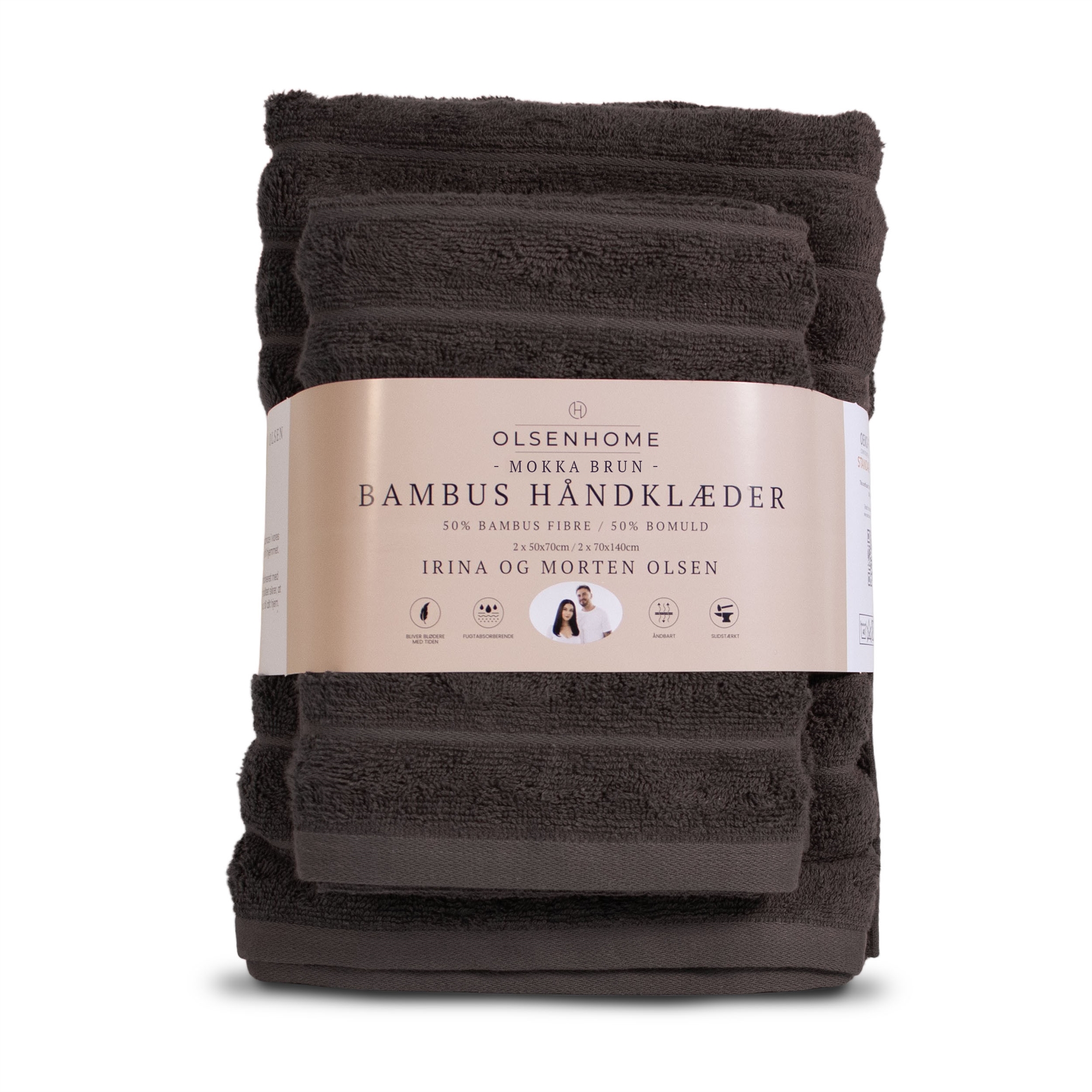 Forside » Håndklæder Bambus håndklæde - 4 stk håndklædepakke - Mokka brun - OlsenHome Spar51% OlsenHome 399,95195,00DKKSpar 205,- På lager Trustpilot Antal Læg i kurv Se mere fra: OlsenHome Artikelnummer: 8141-12 Læs vores håndklæde guide Se vores udvalg af håndklæderpakker Se vores store udvalg af tilbehør til badeværelset Har du spørgsmål til produktet? Naturlige bambusfibreBlødt og behageligtHøj absorberingsevne Type: Badehåndklæder • håndklæder Størrelse: 2 stk. 70x140 cm 2 stk. 50x70 cm Farve: Mokka brun Kvalitet: 50% bambusfibre og 50% bomuld Vægt: 550 gram/m² Vask: 40° Certificering: STANDARD 100 by OEKO-TEX® (19.HPK.71637) Bambus håndklæderne er den perfekte kombination af luksus og komfort. Disse håndklæder er ikke bare almindelige håndklæder - de er en oplevelse af velvære og forkælelse hver gang, du bruger dem. Håndklæderne er lavet af kvalitets bambusfibre, der giver en utrolig blød og lækker følelse mod din hud. Du vil straks mærke forskellen og nyde den luksuriøse komfort. Bambus håndklæder er kendt for deres høje absorberingsevne. De absorberer øjeblikkeligt og tørrer dig hurtigt, hvilke gør dem perfekte til brug efter en forfriskende bruser eller træning. En anden stor fordel ved bambus er, at det er let at vedligeholde. Det kan nemt vaskes i maskinen, og det bliver ikke slidt på samme måde som almindelige håndklæder. Du finder vores store sortiment af kvalitets lagner her Olsen Home indkapsler sublim elegance i vores omhyggeligt udvalgte produktlinje til hjemmet. Den tidløse minimalistiske stil kombineret med fokus på kvalitet, æstetik og funktionalitet sikrer, at hvert produkt tilføjer en subtil luksus til dit hjem. Tilbage til Håndklæder