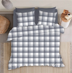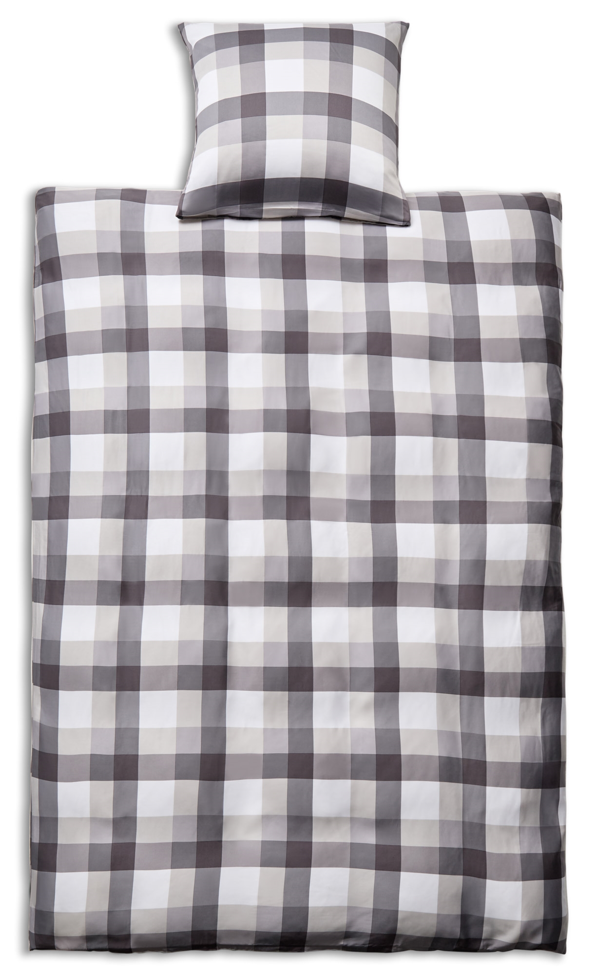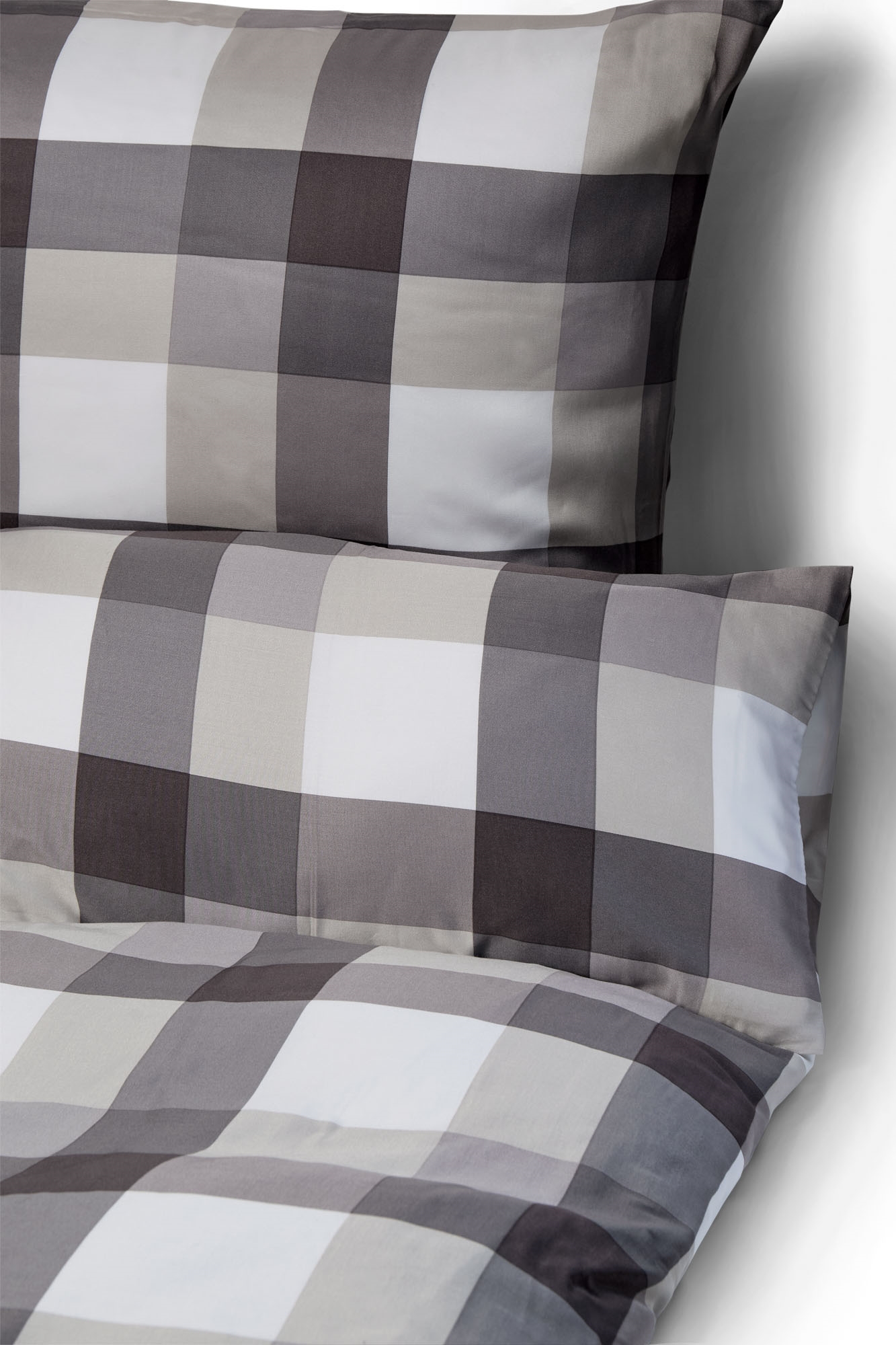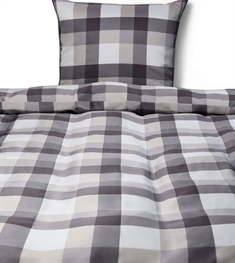 Bambus sengetøj - 100% Naturligt bambus - 140x200 cm - Store grå tern - Satinvævet sengesæt