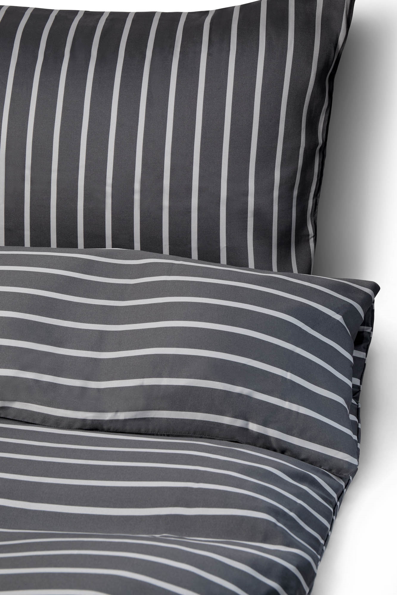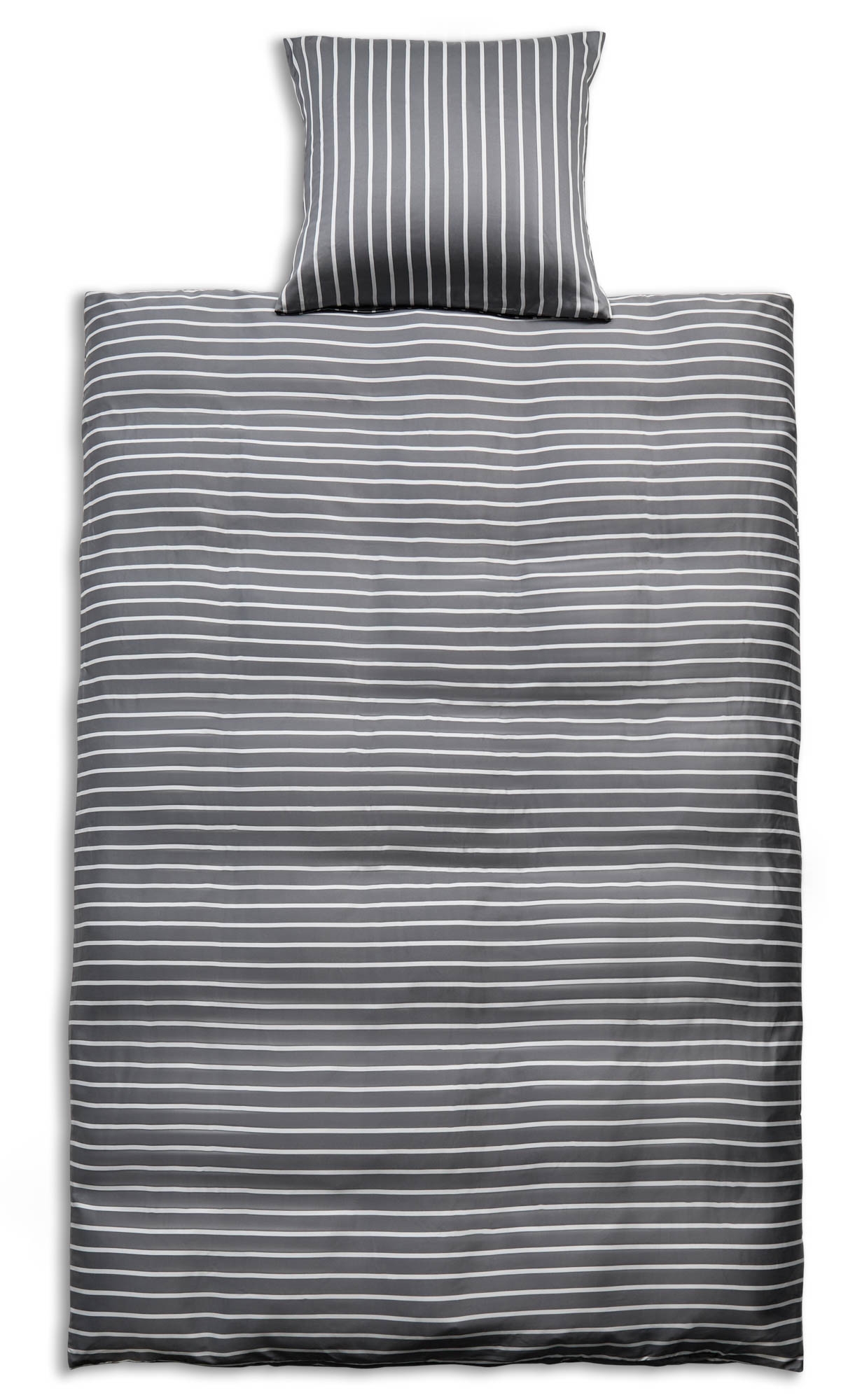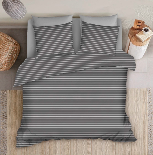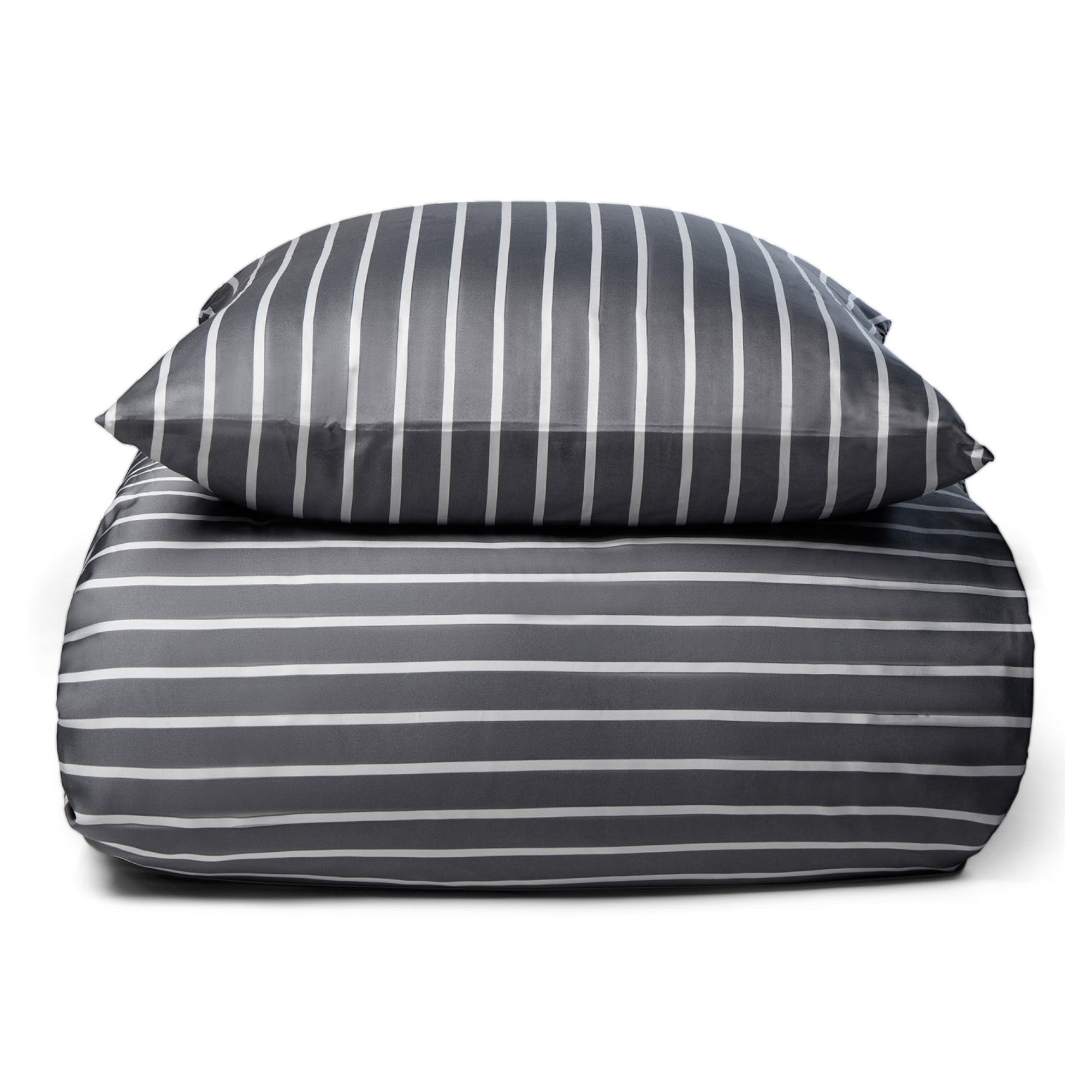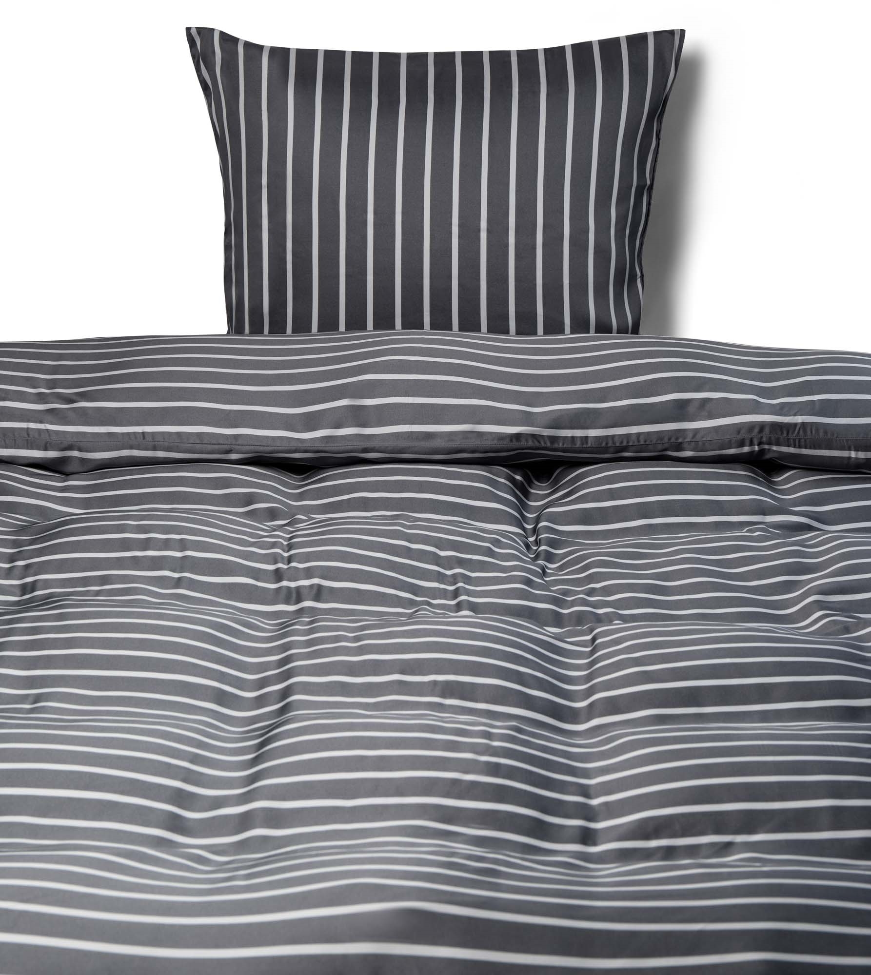 Bambus sengetøj - 100% Naturligt bambus - 140x200 cm - Stribet grå - Satinvævet sengesæt