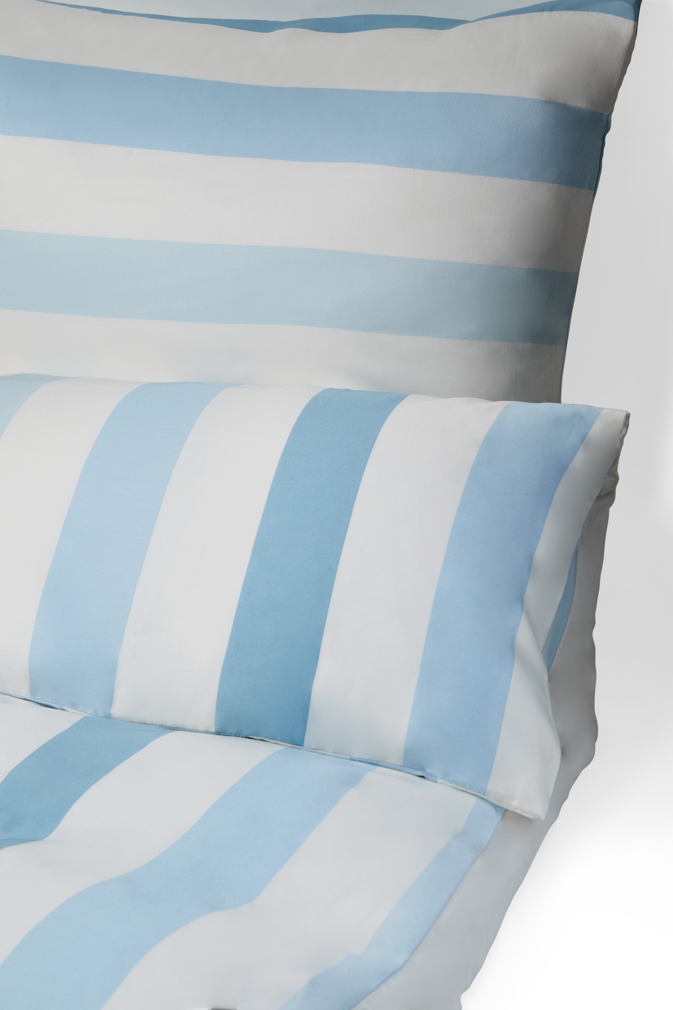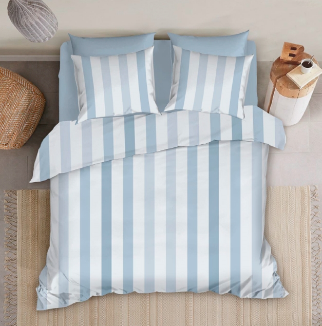 Bambus sengetøj - 100% Naturligt bambus - 140x200 cm - Blå brede striber - Satinvævet sengesæt