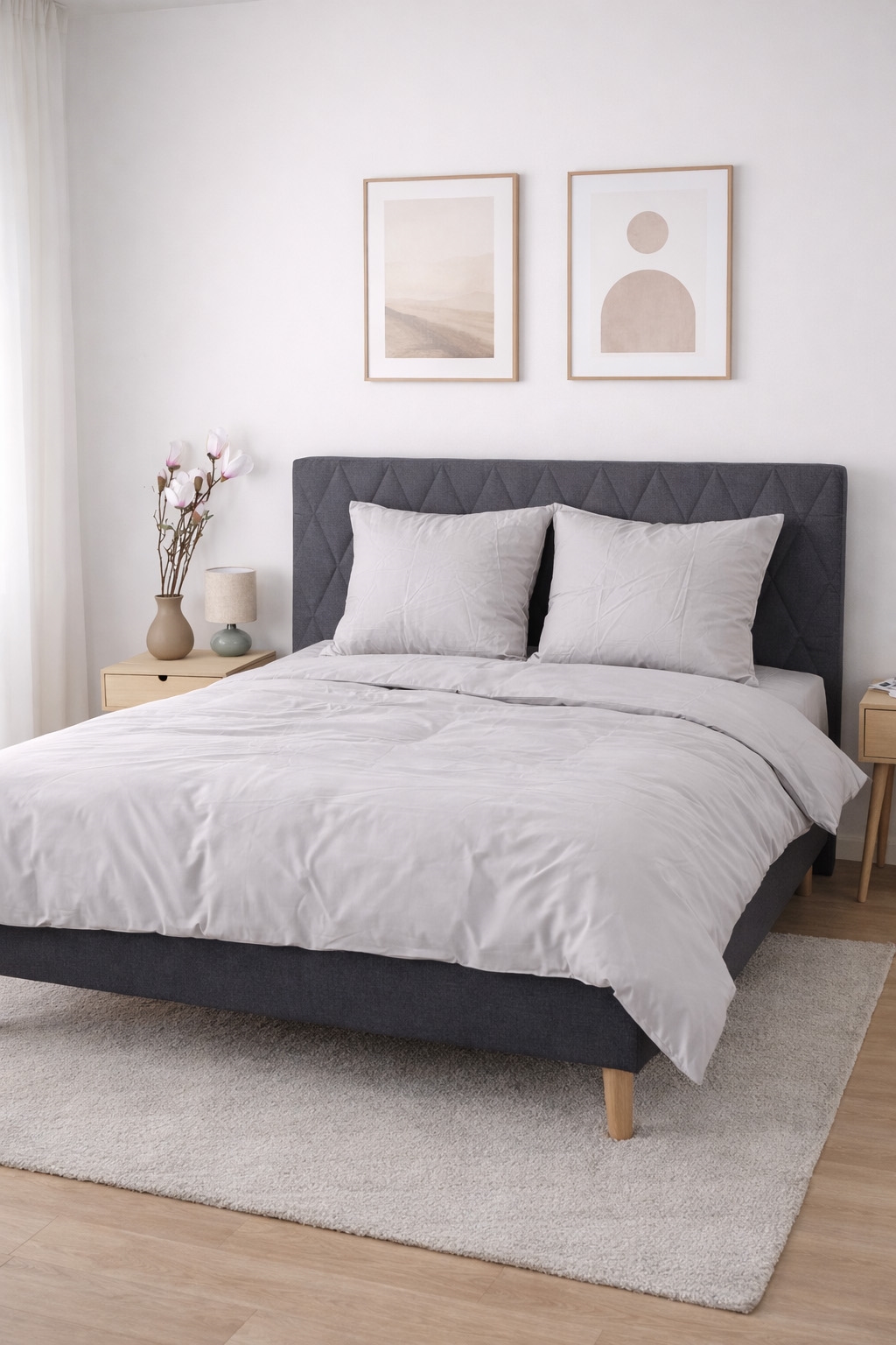 Bambus sengetøj - 100% Naturligt bambus - 140x200 cm - Lysegråt satinvævet sengesæt