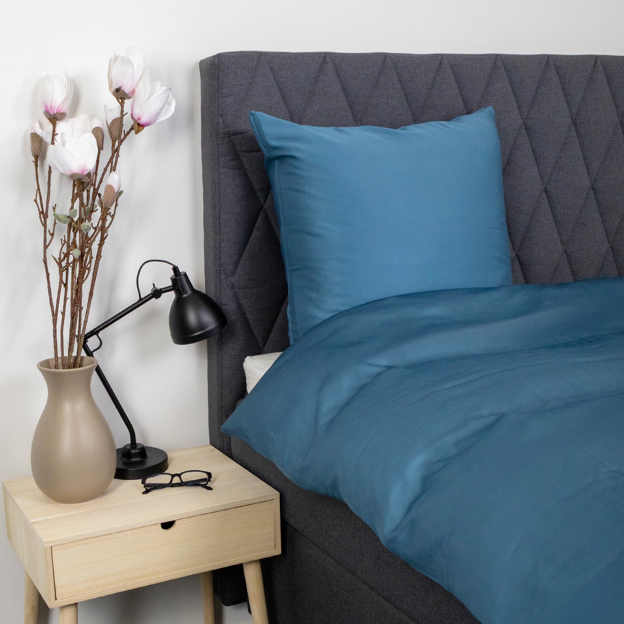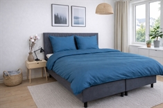 Det ensfarvede design i blå giver et roligt, elegant og tidløst udtryk, der passer ind i enhver indretning. Dynebetrækket lukkes med lynlås, mens pudebetrækket har overlap, hvilket sikrer en pæn finish og god funktion i hverdagen.