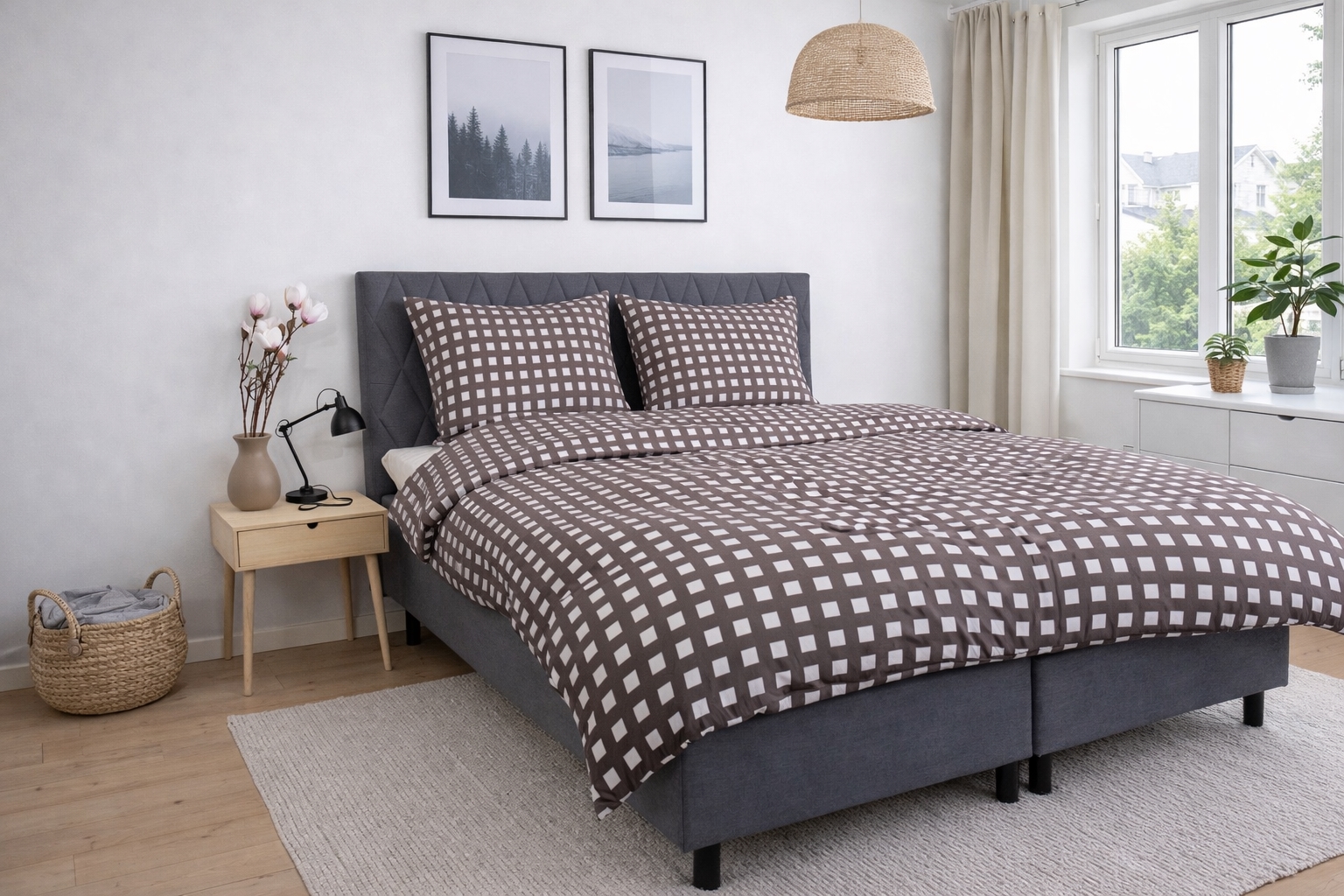 Oplev en ny standard indenfor komfort med dette bambus sengetøj i grå og hvide tern. Det klassiske ternede design giver et stilrent og tidløst udtryk, der passer perfekt ind i både moderne og nordiske soveværelser. Samtidig får du en silkeblød kvalitet, der løfter din nattesøvn til et helt nyt niveau.