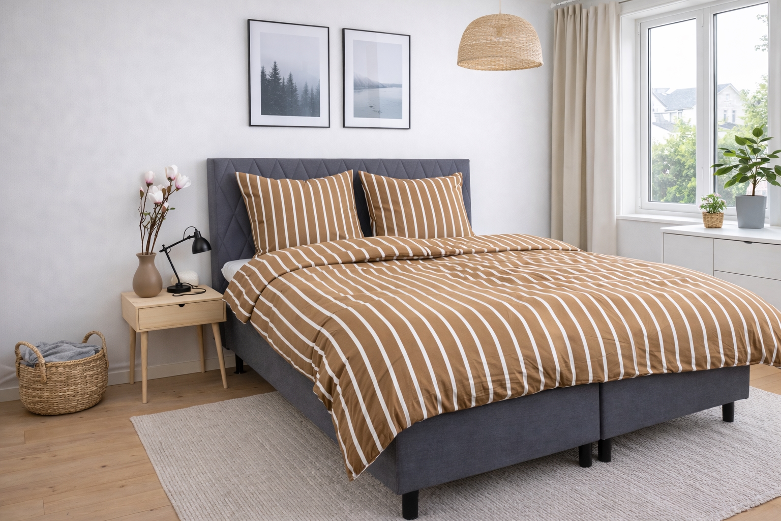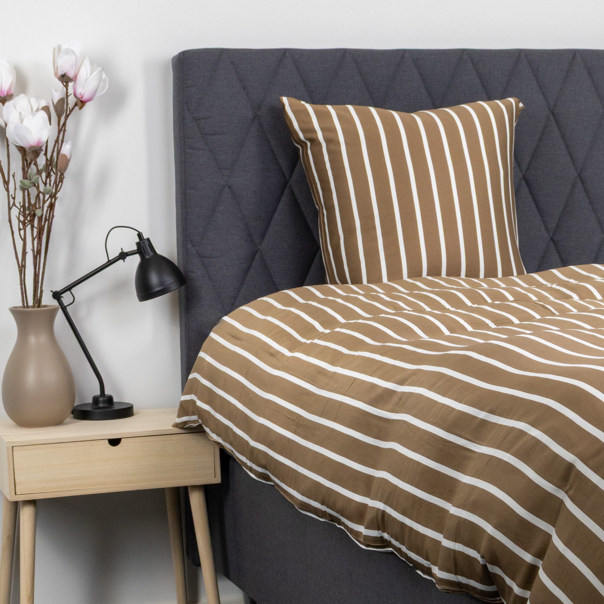 Bambus sengetøj med beige striber