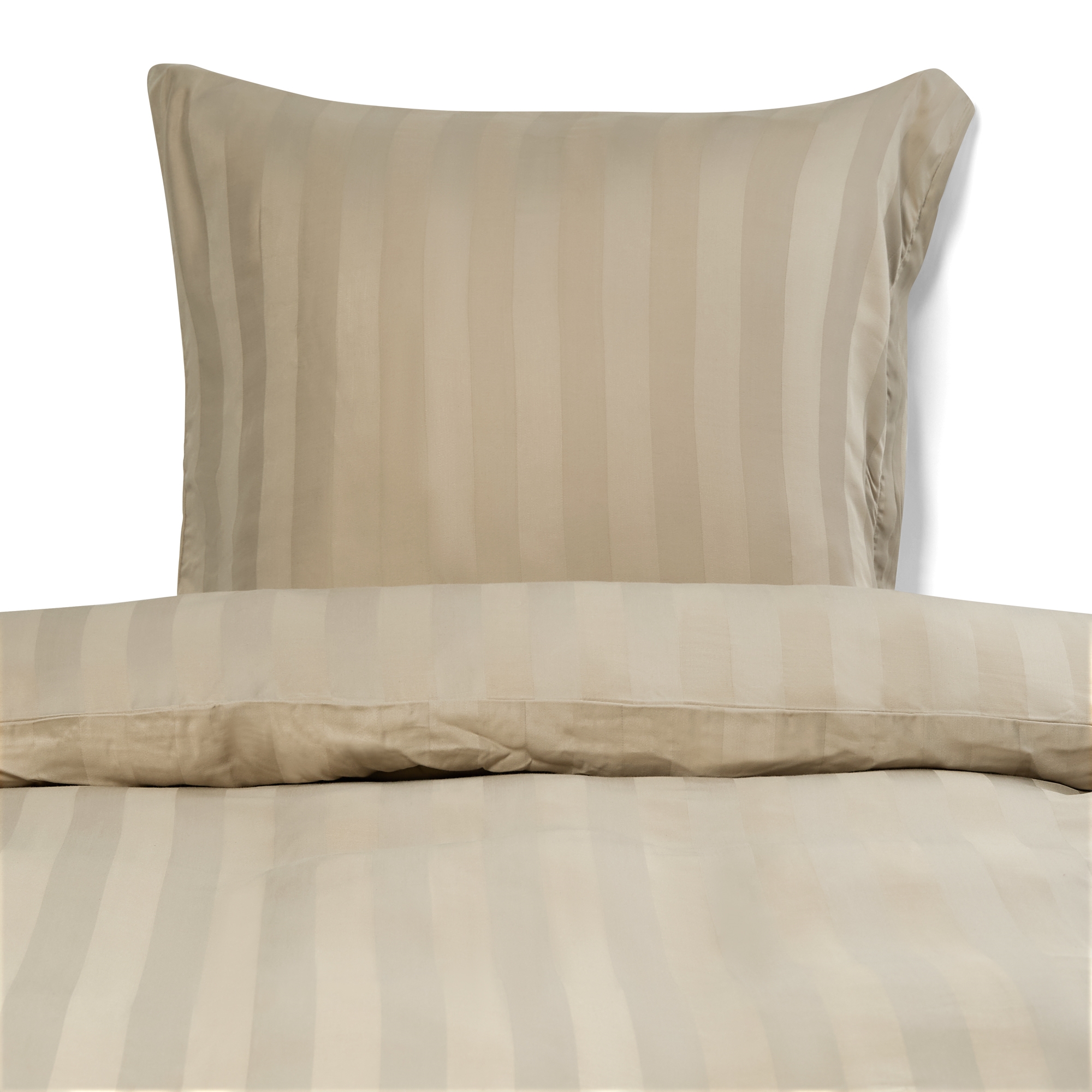 Bambus sengetøj - 140x220 cm - 100% Naturligt bambus - Sandfarvet, jacquardvævet sengesæt med striber