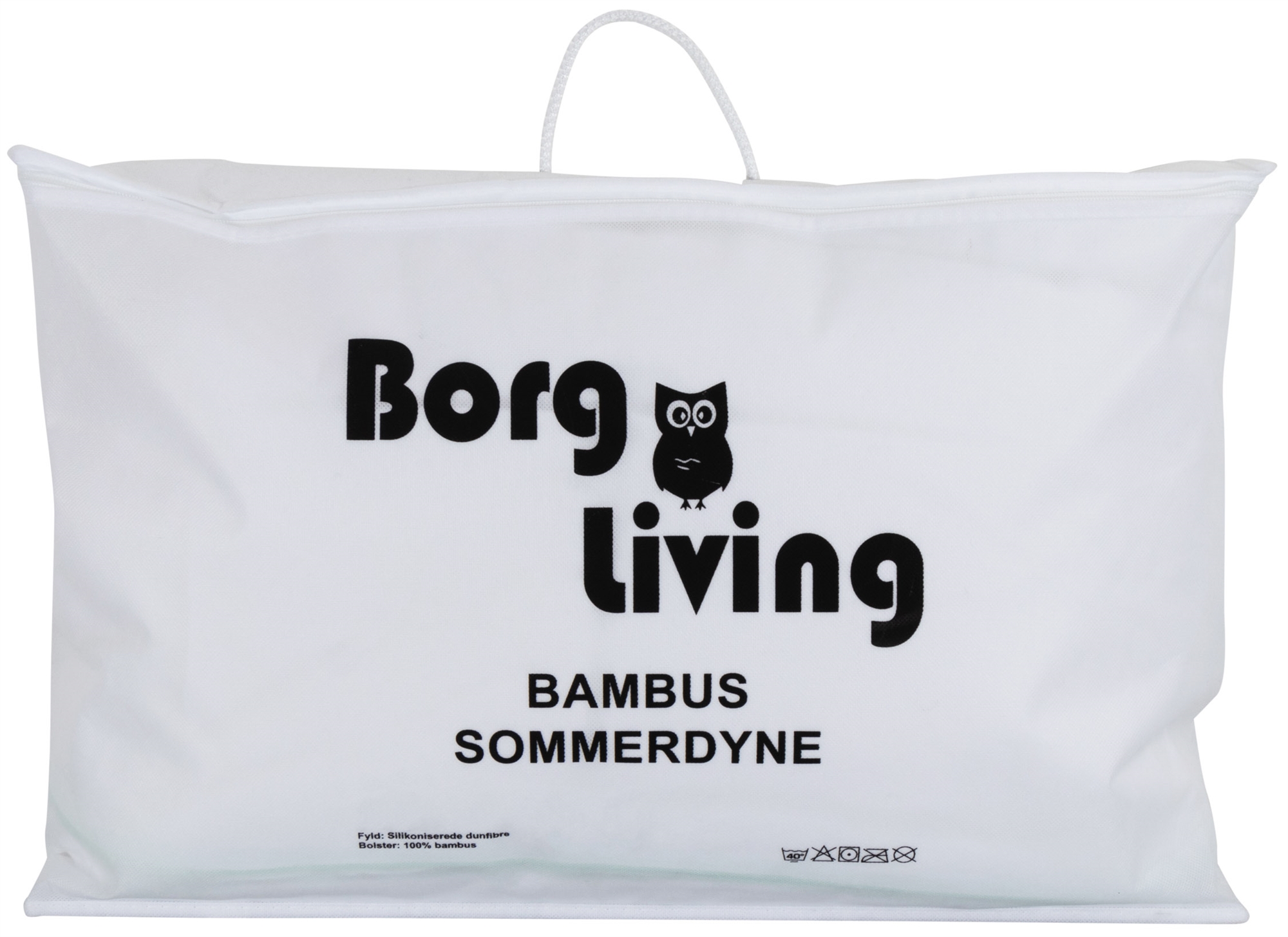 Forside » Dyner » Varmeklasse » Sommerdyner Bambus sommer dyne 200x220 cm - Dobbelt sommerdyne med ekstra blød bambus og dunfiber - Borg Living Spar56% Borg Living 1.799,95799,95DKKSpar 1.000,- Gratis fragt på denne varePå lager Trustpilot Antal Læg i kurv Se mere fra: Borg Living Artikelnummer: BL792 Læs vores dyneguide Læs om vedligeholdelse af dyner og puder Se vores store udvalg af puder Har du spørgsmål til produktet? Den blødeste dyne100% BambusAntibakteriel Størrelse: 200x220 cm - dobbelt dyne Type: Bambus sommerdyne Brand: Borg Living Fyldvægt: 630g Fyld: 100% Silikoniserede dunfibre Bolster: 100% bambus Konstruktion: 10x11 kassettedyne - med 3 cm panelkant Vask: 40° (Vigtigt at anvende Enzymfrit vaskemiddel) Tørretumbling: Ja Garanti: 2 år Leveres i opbevaringstaske Certificering: STANDARD 100 by OEKO-TEX® (12.HCN.05085) Se alle vores hovedpuder her Sommer bambus dynen fra Borg Living, en dyne med ekstra blødhed og super komfort. Bambus dynen sørger for at holde dig dejlig kølig til de varme sommernætter. Dynen er produceret med et dejlig blødt bolster af 100% bambus og ekstra bløde fine silikoniserede dunfibre. Savner du en blød dyne, med god isolering, ekstra blød og lækker samt en helt unik tyngde, så er sommer bambusdynen den du leder efter. Så leder du efter en allergivenlig sommerdyne er det her et lige noget for dig. Se vores store udvalg af sengetøj i 200x220 cm her Hvorfor bambus? Bambus er et af tidens mest bæredygtige materialer. Når bambus høstes bruges alt fra planten, alt fra de inderste fibre til den hårde skal. Til dyner, som denne, og tekstiler bruges de bløde fibre i kernen. Disse fibre indeholder helt unikke egenskaber, som overføres til de produkter der produceres. Med en bambus dyne kan du derfor forvente: ◾ Høj fugttransport og åndbarhed ◾ Unik & luksuriøs blødhed ◾ Ekstra hurtig tørreevne ◾ Antibakterielt materiale ◾ Ekstra høj slidstyrke ◾ Særlig balance ift. tyngde og lethed ◾ Let vedligeholdelse Det danske brand Borg Living producerer eksklusive serier af dyner, puder og boligtekstiler til dit hjem. Brandet som er etableret i 2013 og er bl.a. kendt for deres nytænkning indenfor kvalitet og design. Borg Livings fantastiske produkter, bidrager til en optimal og behagelig nattesøvn samt udsmykker dit hjem med moderne og lækkert boligtilbehør. Tilbage til Sommerdyner