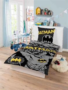 Forside » Sengetøj » Børne sengetøj » Børne sengetøj 140x200 cm Batman sengetøj - 140x200 cm - In the night - Vendbart dynebetræk - Batman sengesæt i 100% bomuld Licens 179,95DKK På lager Trustpilot Antal Læg i kurv Se mere fra: Licens Artikelnummer: 99254-1 Læs vores sengetøjsguide Se vores store udvalg af lagner Se vores store udvalg af dyner 140x200 Har du spørgsmål til produktet? Blødt og lækkert bomuldOEKO-TEX® certificeretPopulært motiv Dynebetræk: 140x200 cm Pudebetræk: 60x63 cm Materiale: 100% blød bomuld Farve: Sort og grå Motiv: Vendbart design - forside med motiv af Batman, bagside med all-over print af flagermus Lukning: Dyne med knapper og pudebetræk med overlap Vask: 60° Tørretumbling: Ja Tåler strygning: Ja Certificering: STANDARD 100 by OEKO-TEX®(2012PK0016). Din garanti for at produktet er fri for sundhedsskadelig kemi. Sengetøj med et sejt motiv af Batman og en fin bagside med flagermus. Det bløde sengesæt produceret i 100% bomuld er både åndbart og absorberende, og med god sovekomfort. Et slidstærkt bomulds børnesengesæt, som gør børneværelset lidt mere spændende. Mega sejt Batman sengetøj, med et virkelig cool motiv. Sengesættets forside er en stort motiv af Batman "In the night". Bagsiden er fyldt med de ikoniske sorte flagermus på en grå baggrund. Et sejt sengesæt til alle der er vilde med den ikoniske superhelt. Sengesættet er produceret i 100% blød bomuld som gør sættet slidestærkt og med høj åndbarhed. Den rene bomuldskvalitet giver et lækkert og blødt sengesæt, der er med til at fremme en sovekomfort for barnet. Bomuldssengetøj kan vaskes ved 60° i vaskemaskinen, som er også et med til at holde et et højt hygiejne niveau. Sengetøjet er yderligere fremstillet med OEKO-TEX certificeret, hvilke er din garanti for at sættet er fri for skadelig kemi. Gå på udkig efter favoritterne og meget mere, i vores store udvalg af tilbehør til børneuniverset For barnet bør sengen være et trygt sted og alle elementerne skal til sammen skabe bløde og dejlige omgivelser for barnet at finde ro i. Brug derfor gerne barnets interesser, til at skabe et trygt soverum for barnet. Hos os kan du finde et stort udvalg af tilbehør til sengen og børneværelset, lige fra lagner til dyner, puder, sengetøj og meget mere, og massere af produkter med alle børnenes favoritter på. Alt sammen elementer som kan være med til at skabe det rette sove miljø og værelse til dit barn. Her kan du finde lækre og bløde kvalitets lagner Tilbage til Børne sengetøj 140x200 cm