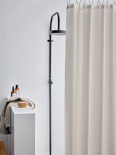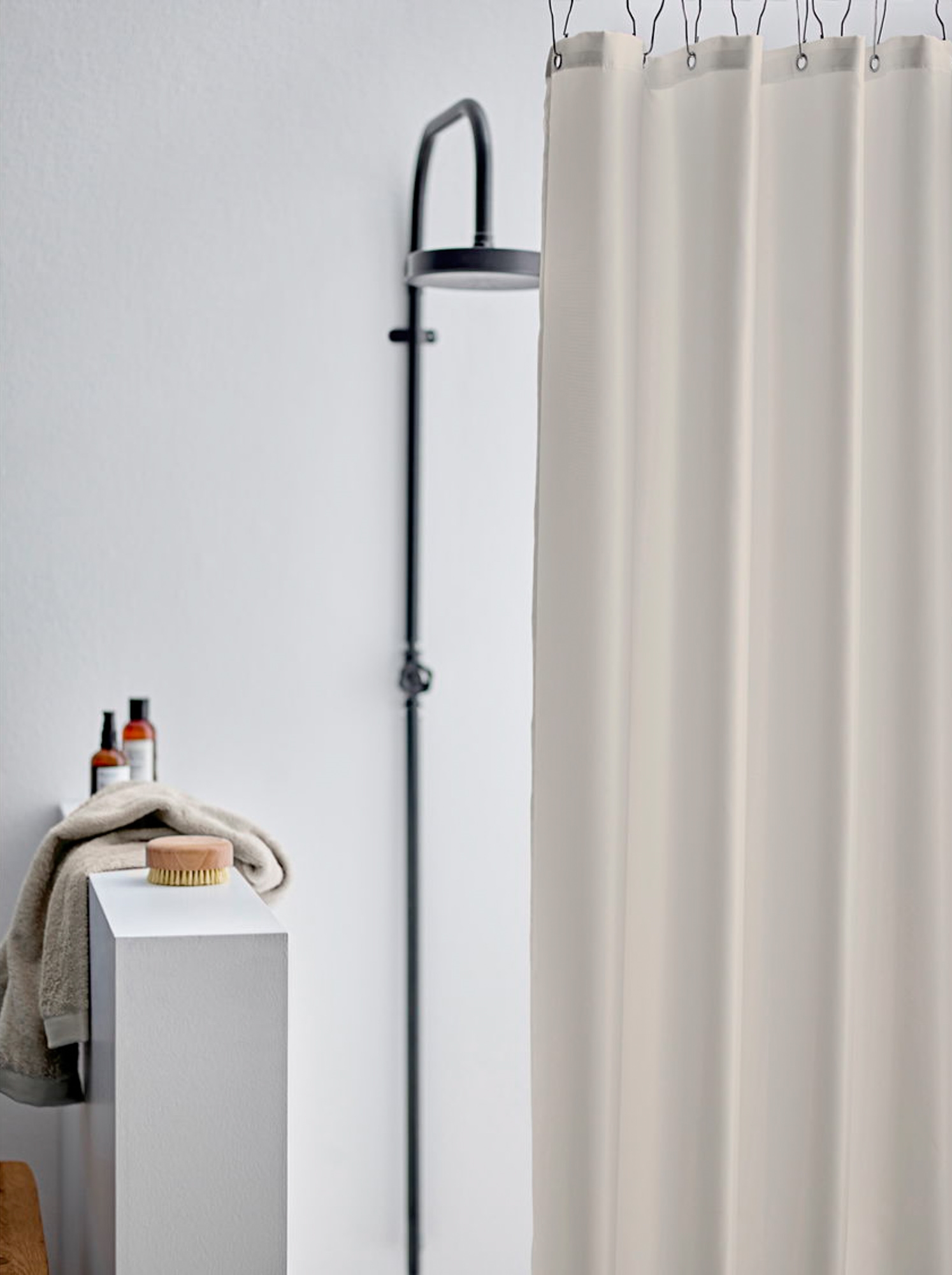180 x 220 cm Produktet er fremstillet af 50 % GRS-certificeret genanvendt polyester, certificeret af Control Union 1022510, og 50 % virgin polyesterVandafvisende overflade 12 ringe med hulbredde 1 cm i toppen Gummibånd i opsyning i bunden Beige