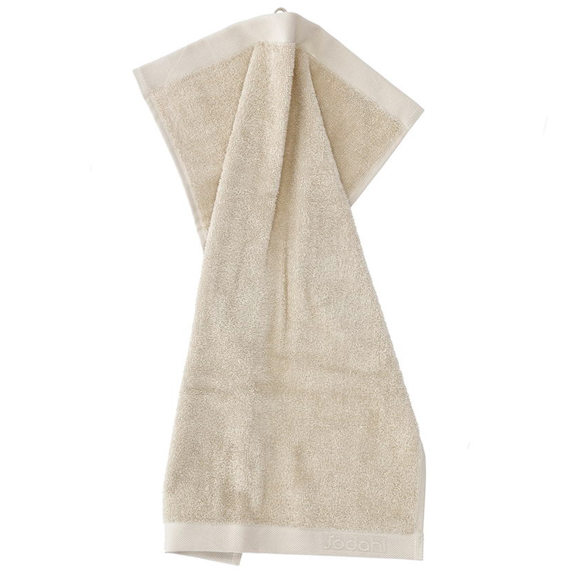Håndklædet er kraftigt og blødt med en god sugeevne, som sikrer en behagelig følelse ved brug. Vævet bort i top og bund med diskret vævet logo og en strikket strop giver et eksklusivt udtryk.