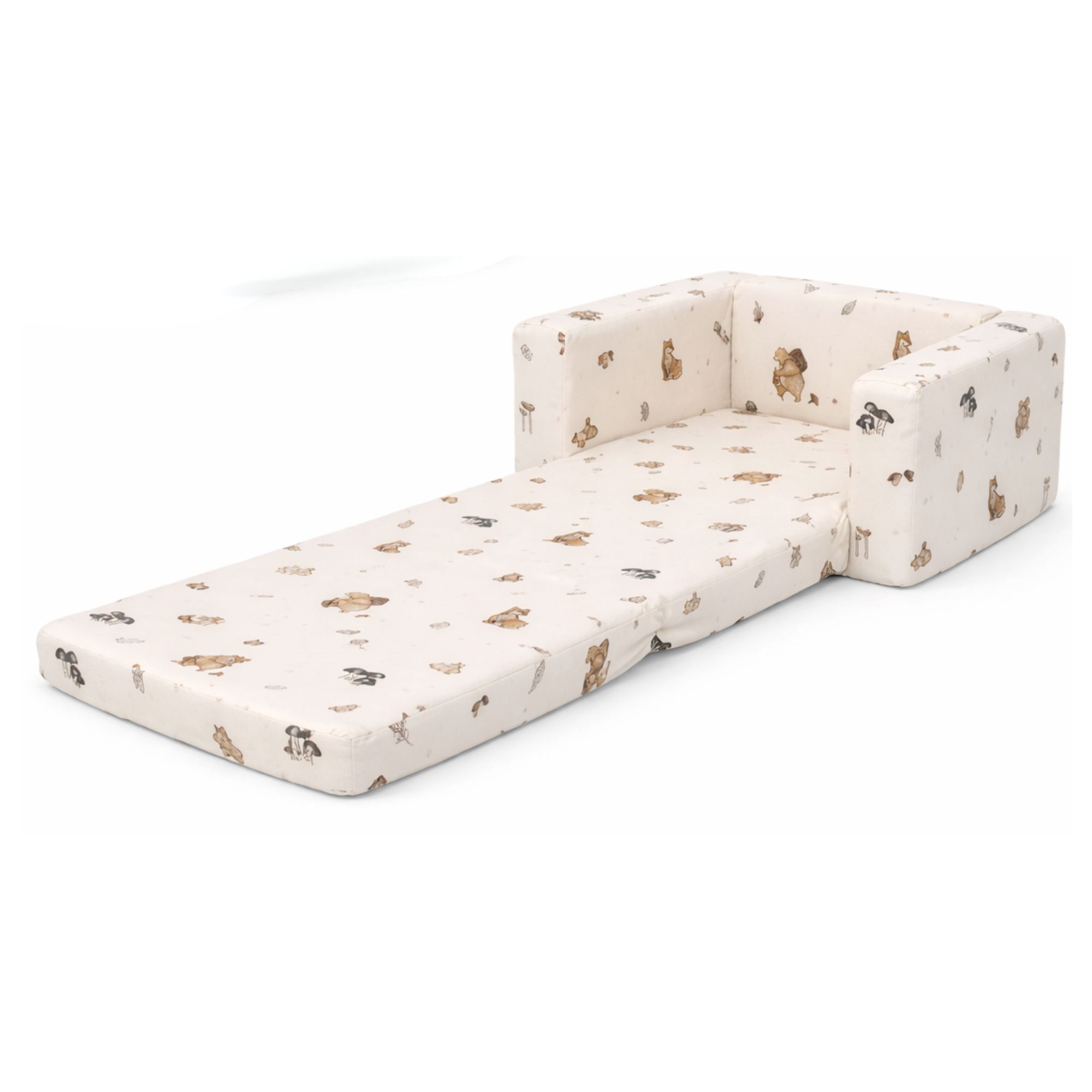 Denne utrolig bløde foldestol til børn er designet med fokus på komfort, samt at opnå flere funktioner i et produkt. Når stolen er sammenfoldet, fungerer den som en hyggelig lille lænestol i børnehøjde. Når den foldes ud, bliver den til en mini-madras, som kan bruges til leg, afslapning eller overnattende legekammerater. Det gør den til et oplagt valg til både børneværelset og stuen.