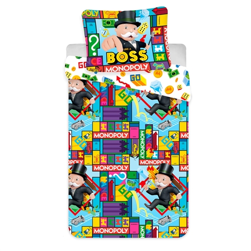 Forside » Sengetøj » Børne sengetøj » Børne sengetøj 140x200 cm Børnesengetøj - 140x200 cm - Monopoly sengesæt - Vendbar dynebetræk i 100% bomuld Licens 199,95DKK På lager Trustpilot Antal Læg i kurv Se mere fra: Licens Artikelnummer: 1247-1 Læs vores sengetøjsguide Se vores store udvalg af lagner Se vores store udvalg af dyner 140x200 Har du spørgsmål til produktet? Høj åndbarhedBlødt - 100% bomuldOEKO-TEX® certificeret Dynebetræk: 140x200 cm Pudebetræk: 60x63 cm Materiale: 100% blød bomuld Motiv: Monopoly brætspillet Design: vendbar - Forside fyldt med alt godt fra spillet, bagside med all-over print Lukning: Dyne med knapper, pudebetræk med overlap Vask: 60° Tørretumbling: Ja Tåler strygning: Ja Certificering: STANDARD 100 by OEKO-TEX® (2012PK0016). Din garanti for at produktet er fri for sundhedsskadelig kemi. Sengesæt i 100% blød bomuld, med design af Monopoly brætspillet. Perfekt til alle der elsker at spille Monopoly med familie og venner. Produceret med lette og åndbare bomuldstråde som giver sengesættet en følelse af blødhed, der gør at dynen føles dejlig for dit barn at sove med. Giv børneværelse et indretnings pift med dette Monopoly sengesæt. Sengesættet er vendbart, med design af Monopoly på forsiden og et all-over print på bagsiden. Sengesættet er produceret i 100% blød bomuld som gør sættet slidestærkt og med høj åndbarhed. Den rene bomuldskvalitet giver et lækkert og blødt sengesæt, der er med til at fremme en sovekomfort for barnet. Bomuldssengetøj kan vaskes ved 60° i vaskemaskinen, som er også et med til at holde et et højt hygiejne niveau. Sengetøjet er yderligere fremstillet med OEKO-TEX certificeret, hvilke er din garanti for at sættet er fri for skadelig kemi. Gå på udkig efter favoritterne og meget mere, i vores store udvalg af tilbehør til børneuniverset For barnet bør sengen være et trygt sted og alle elementerne skal til sammen skabe bløde og dejlige omgivelser for barnet at finde ro i. Brug derfor gerne barnets interesser, til at skabe et trygt soverum for barnet. Hos os kan du finde et stort udvalg af tilbehør til sengen og børneværelset, lige fra lagner til dyner, puder, sengetøj og meget mere, og massere af produkter med alle børnenes favoritter på. Alt sammen elementer som kan være med til at skabe det rette sove miljø og værelse til dit barn. Her kan du finde lækre og bløde kvalitets lagner Tilbage til Børne sengetøj 140x200 cm
