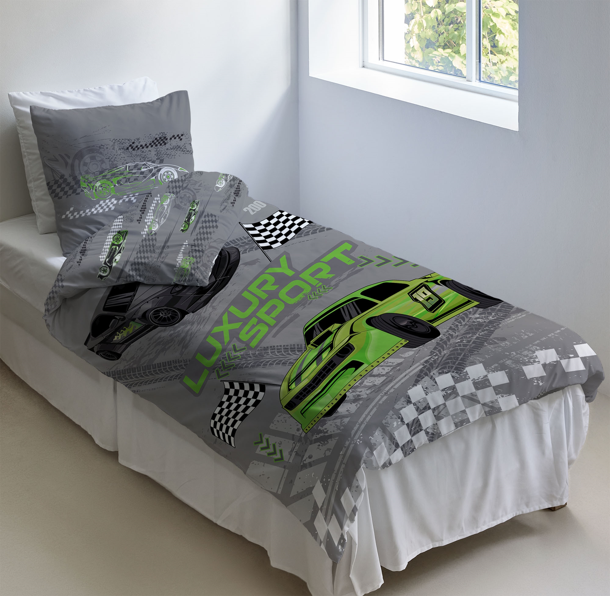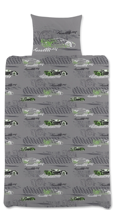 Forside » Sengetøj » Børne sengetøj » Børne sengetøj 140x200 cm Børnesengetøj med racerbiler 140x200 cm - Vendbart sengesæt - 100% bomulds sengelinned Licens 169,95DKK På lager Trustpilot Antal Læg i kurv Se mere fra: Licens Artikelnummer: 1833-1 Læs vores sengetøjsguide Se vores store udvalg af lagner Se vores store udvalg af dyner 140x200 Har du spørgsmål til produktet? Populært design Blødt og lækkert bomuldOEKO-TEX® certificeret Dynebetræk: 140x200 cm Pudebetræk: 60x63 cm Materiale: 100% blød bomuld Farve: Grå og grøn Motiv: Racerbiler Design: Vendbar - Forside med racerbiler, bagside med all-over print Lukning: Dyne med knapper, pudebetræk med overlap Vask: 60° Tørretumbling: Ja Tåler strygning: Ja Certificering: STANDARD 100 by OEKO-TEX® (11-67789 Shirley). Din garanti for at produktet er fri for sundhedsskadelig kemi. Blødt sengetøj med motiv af racerbiler. Det fine sengetøj har to sider at vælge imellem, da det er lavet med smart vendbart design. Det bløde sengesæt produceret i 100% bomuld er både åndbart og absorberende, og med god sovekomfort. Et slidstærkt bomulds børnesengesæt, som gør børneværelset lidt mere spændende. Race ind i drømmeland med dette seje sengesæt med racerbiler. Sengesættet er vendbart med to forskellige design på for- og bagside. Forsiden har et stort print af to racerbiler, imens bagsiden har et fint all-over print af små racerbiler. Det er altid en god ide at gøre brug af barnets interesser, hvis man ønsker at skabe et tryggere og mere spændende sovemiljø til sit barn. Sengesættet er produceret i 100% blød bomuld som gør sættet slidestærkt og med høj åndbarhed. Den rene bomuldskvalitet giver et lækkert og blødt sengesæt, der er med til at fremme en sovekomfort for barnet. Bomuldssengetøj kan vaskes ved 60° i vaskemaskinen, som er også et med til at holde et et højt hygiejne niveau. Sengetøjet er yderligere fremstillet med OEKO-TEX certificeret, hvilke er din garanti for at sættet er fri for skadelig kemi. Gå på udkig efter favoritterne og meget mere, i vores store udvalg af tilbehør til børneuniverset For barnet bør sengen være et trygt sted og alle elementerne skal til sammen skabe bløde og dejlige omgivelser for barnet at finde ro i. Brug derfor gerne barnets interesser, til at skabe et trygt soverum for barnet. Hos os kan du finde et stort udvalg af tilbehør til sengen og børneværelset, lige fra lagner til dyner, puder, sengetøj og meget mere, og massere af produkter med alle børnenes favoritter på. Alt sammen elementer som kan være med til at skabe det rette sove miljø og værelse til dit barn. Her kan du finde lækre og bløde kvalitets lagner Tilbage til Børne sengetøj 140x200 cm