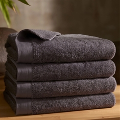 Opgrader din badeværelse med dette elegante badehåndklæde fra By Borg i en mørkegrå nuance. Håndklædet kombinerer komfort og stil og er perfekt til dig, der ønsker lidt ekstra luksus i hverdagen. Fremstillet i 100% bomuld får du en blød og behagelig kvalitet, der føles skånsom mod huden. Den gode absorberingsevne sikrer, at du hurtigt bliver tør efter badet, mens den fyldige kvalitet giver en lækker og komfortabel fornemmelse. Det stilrene design fremhæves af en flot, bred bort, som tilfører håndklædet et eksklusivt og moderne udtryk og gør det til en elegant detalje på badeværelset. De praktiske ophængsstropper gør det nemt at hænge håndklædet op, så det altid er klar til brug.