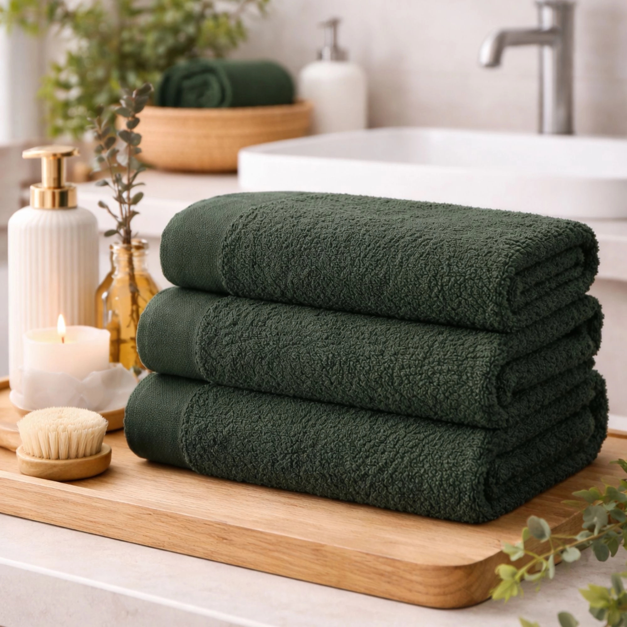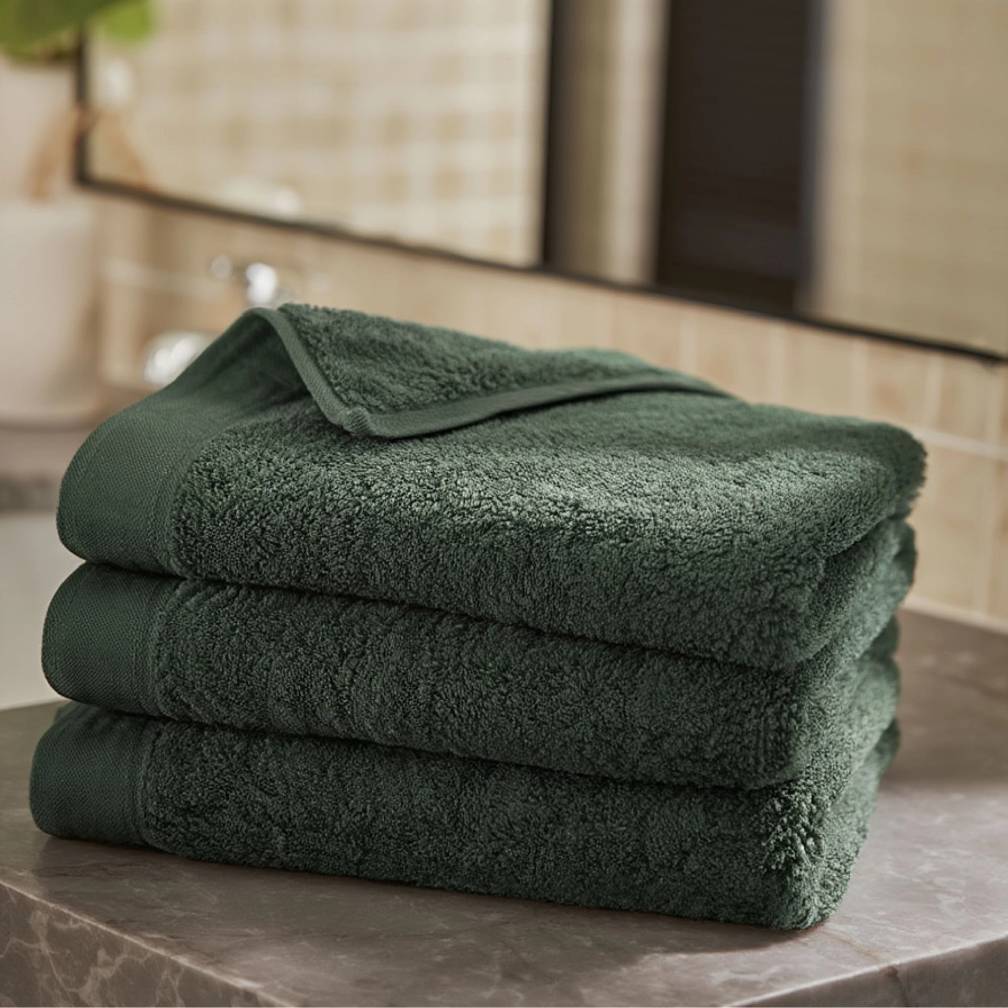 Blødt mørkegrønt håndklæde i 50x100 cm
