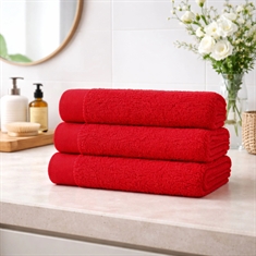 Forkæl dig selv med et blødt og indbydende håndklæde fra danske By Borg i en rød nuance, der tilføjer varme og stil til dit badeværelse. Håndklædet er fremstillet i 100% bomuld og giver en behagelig, blød følelse mod huden - perfekt efter både bad og håndvask. Den fyldige kvalitet sikrer en høj absorberingsevne, så du hurtigt bliver tør. Samtidig har håndklædet en bred, dekorativ bort, der giver et eksklusivt og stilfuldt udtryk, som løfter håndklædet til et nyt niveau. Det enkle design gør det nemt at kombinere med resten af din indretning, mens de praktiske ophængsstropper sikrer, at håndklædet altid er lige ved hånden og nemt kan hænge til tørre.