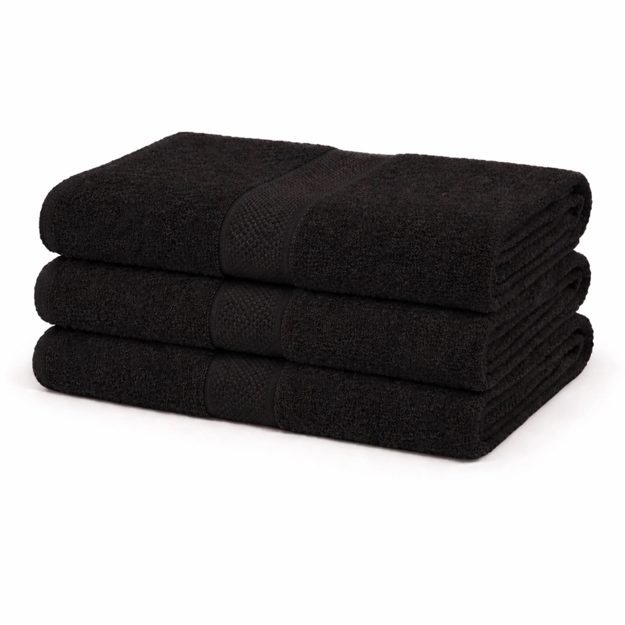 Bomulds håndklæde - 100% bomuld - Badehåndklæde 70x140 cm - Diamant - Sort