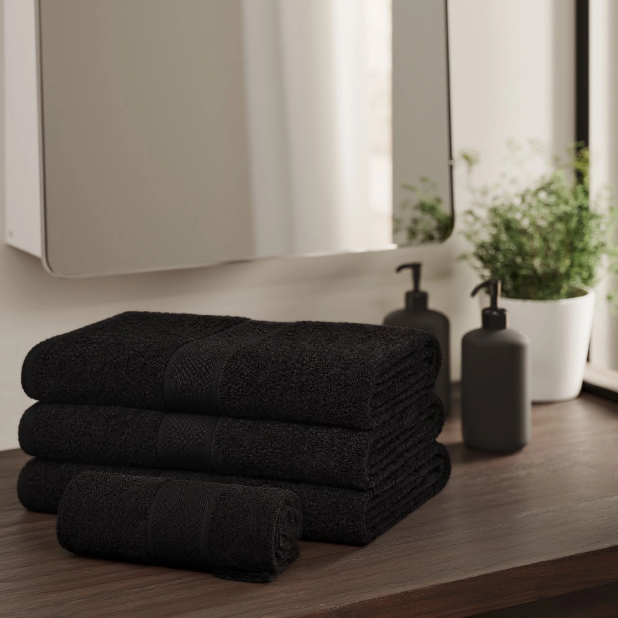 Bomulds håndklæde - 100% bomuld - 50x100 cm - Diamant - Sort
