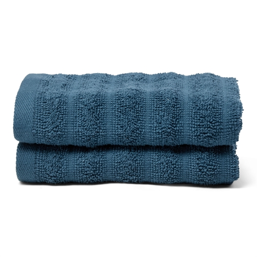 Blå gæstehåndklæder i kæmmet bomuld 30x50 cm - 2-pak