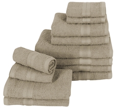 Håndklæder i bomuld, fås i forskellige størrelser, og lige fra små vaskeklude til store badehåndklæder.