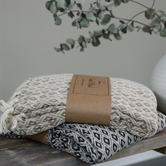 Den er også perfekt at tage med udenfor, hvor den skaber ekstra hygge og varme på kolde aftener på terrassen. Med sine dekorative frynser og tidløse design er denne bomuldsplaid både praktisk og dekorativ.