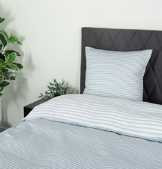 Forside » Sengetøj » Enkelt sengetøj » Enkelt sengetøj 150x210 cm (Svensk mål) Bomuldssatin sengetøj - 150x210 cm - Narrow lines blue - Stribet sengetøj - By Night vendbar sengesæt Spar61% Borg LivingBy Night 699,95269,95DKKSpar 430,- På lager Trustpilot Antal Læg i kurv Se mere fra: Borg Living Artikelnummer: 461-3 Læs vores sengetøjsguide Se vores store udvalg af lagner Se vores store udvalg af dyner 150x210 Har du spørgsmål til produktet? Sengetøj - 150x210 cm 100% bomuldssatinLynlås lukning Dynebetræk: 150x210 cm Pudebetræk: 1 stk. á 50x60 cm Materiale: 100% bomuldssatin Vævning: Ekstra fin 230TC (Thread count = antal tråde pr. kvadrat tomme) Farve: Blå og Hvid - Stribet Design: Narrow lines - Blue Brand: By Night Lukning: Dyne- og pudebetræk med lynlås Vask: 60° Tørretumbling: Ja Tåler strygning: Ja Certificering: STANDARD 100 by OEKO-TEX® (11-47893 By Night sengesæt er produceret i 100% bomuldssatin. Med dette utrolige smukke og elegante sengesæt fra By Night, kan familien sove trygt og godt uden at blive udsat for unødvendige og skadelige kemikalier. Sengesættet er Dansk designet med et sprødt og raffineret udtryk der frisker rummet op. Sengesættet har print på begge sider, hvilket giver et fantastisk flot samspil mellem farver og mønstre. Sengelinnedet er 100% gennemfarvet hvilket betyder at farven, under produktionen bindes i bomuldsfibrene der herved giver en utrolig høj farve- og vaskægthed. Dyne- og pudebetræk lukkes med skjult lynlås. Køb let matchende pudebetræk til dine ekstra puder her Frisk sengen og soveværelset op med et flot og lækkert sæt sengetøj som dette. Benyt samtidig muligheden for at sikre dig maximal sovekomfort, ved at tilføje et nyt blødt lagen af høj kvalitet. Du finder vores store sortiment af kvalitets lagner her By Night er kendetegnet af dansk design - de giver dig behagelige sovekomponenter til dit nattemiljø i allerhøjeste kvalitet. By Night producerer sengetøj og lagner til hele familien og lægger stort vægt på tidens trends, således at produktionen altid indebærer moderigtige farver og designs. Tilbage til Enkelt sengetøj 150x210 cm (Svensk mål)